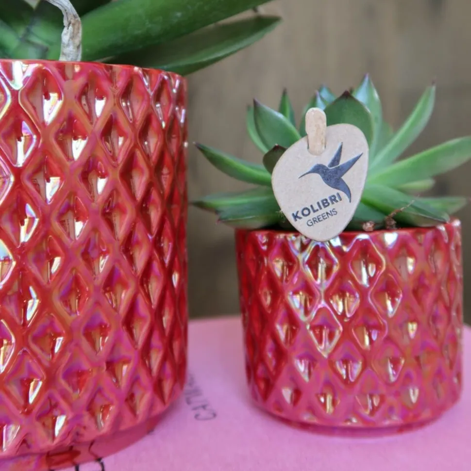 Laissez-vous envoûter par l’orchidée rouge Congo et le pot décoratif Diamond Pearl – une combinaison parfaite pour un intérieur stylé et frappant !