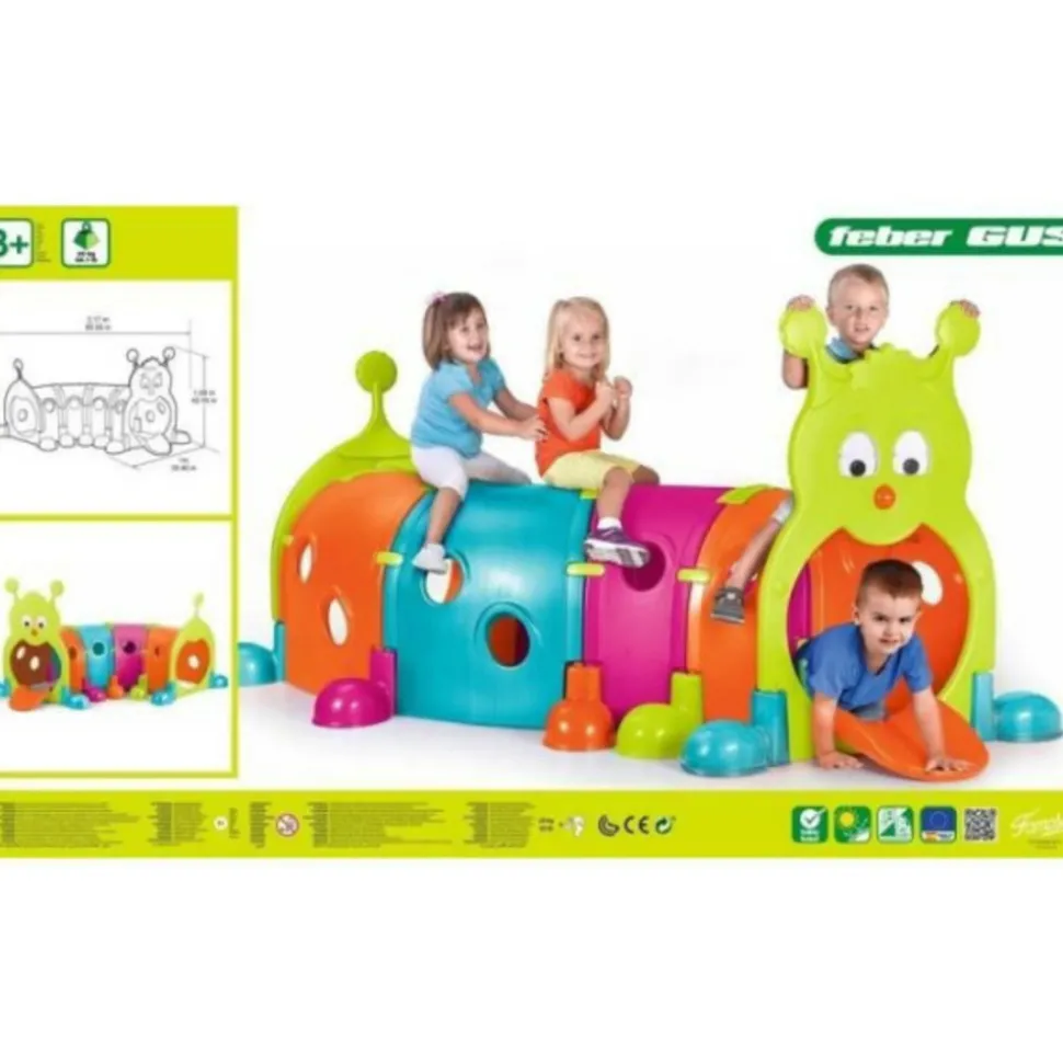 Le Febergus est un tunnel d’activité en forme de chenille, parfait pour s’amuser en plein air. Il est composé de différentes sections colorées et peut etre construit et articulé de différentes manieres. Ce jeu d’extérieur est composé de 2 modules porte (1 porte tete de chenille et 1 porte queue de chenille) et de 4 modules colorés tunnels.