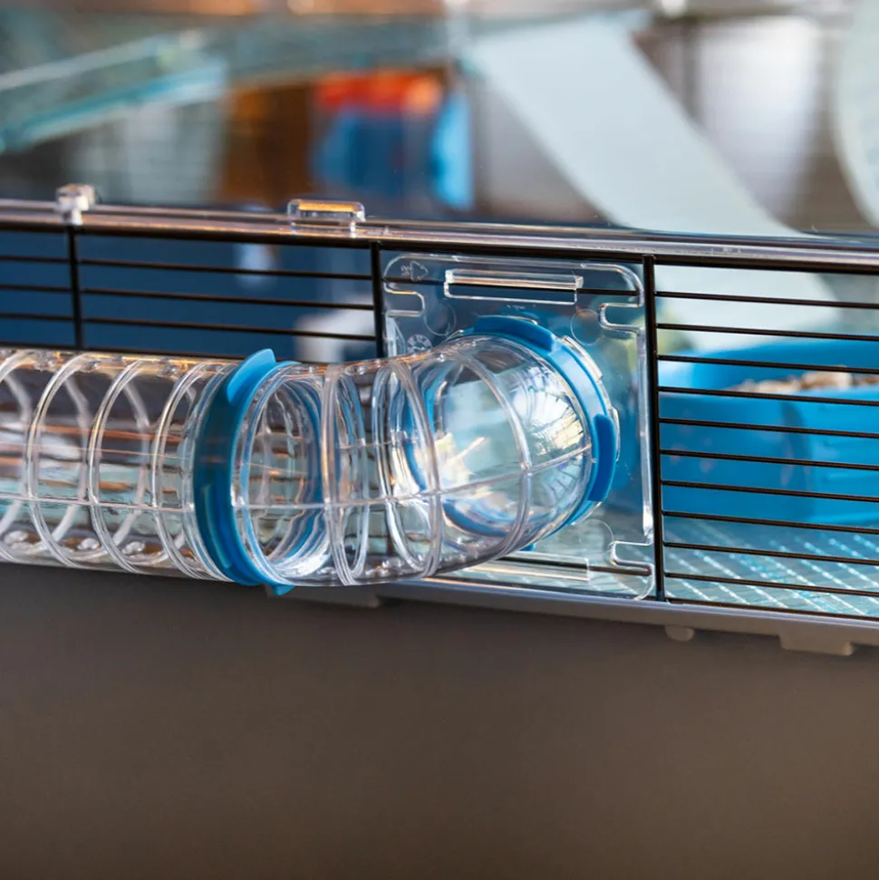 Structure modulable. Duna Fun Large est équipée d’un système de tubes qui, allant de l’intérieur vers l’extérieur de la cage, créent un parcours amusant dans lequel le hamster peut s’amuser. Il est également possible de la connecter à d’autres cages, tubes ou modules d’habitation.