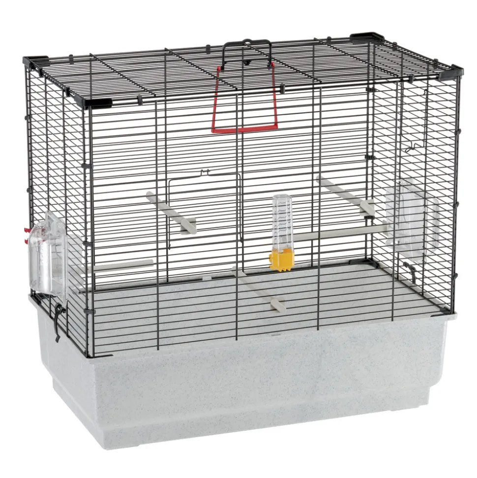 La cage Piano 4 pour oiseaux, canaris et petits oiseaux exotiques de Ferplast présente une construction solide et élégante. La structure est en treillis métallique peint avec un fond en plastique et un plateau amovible pratique.