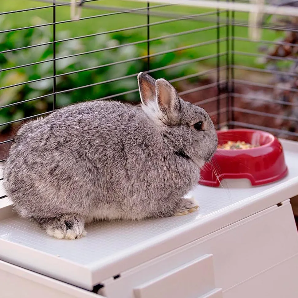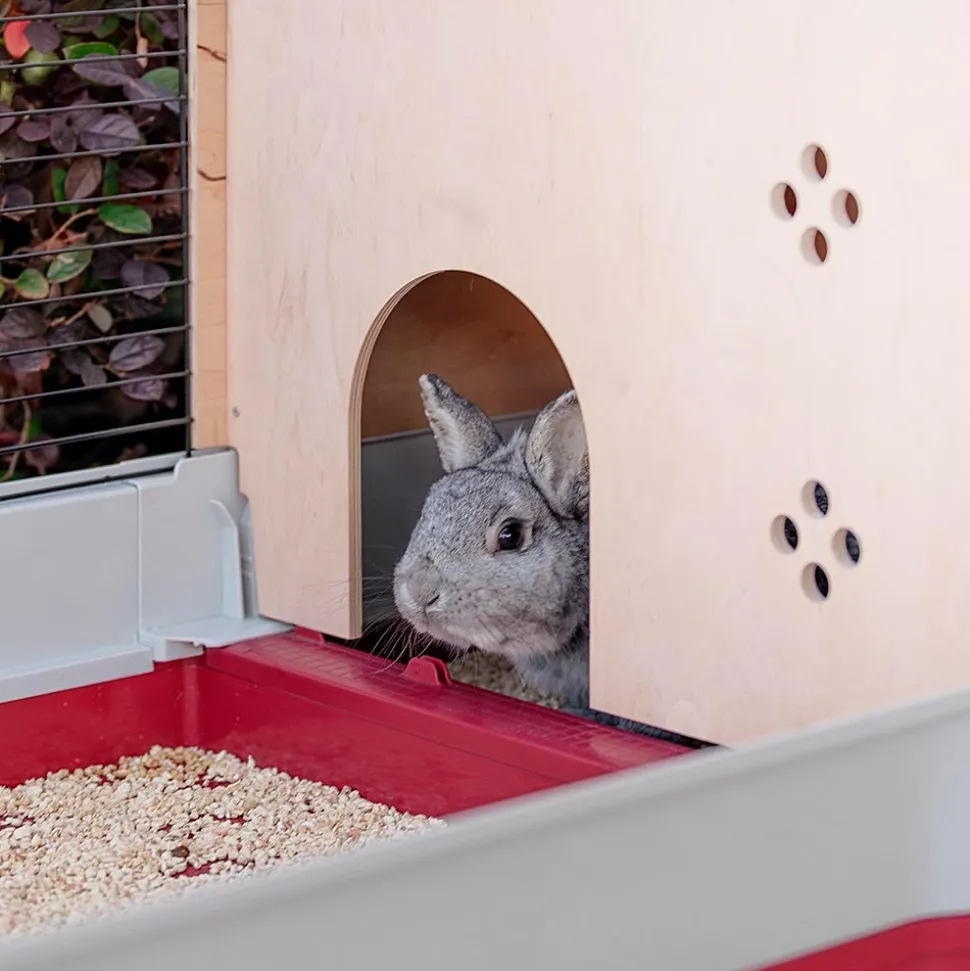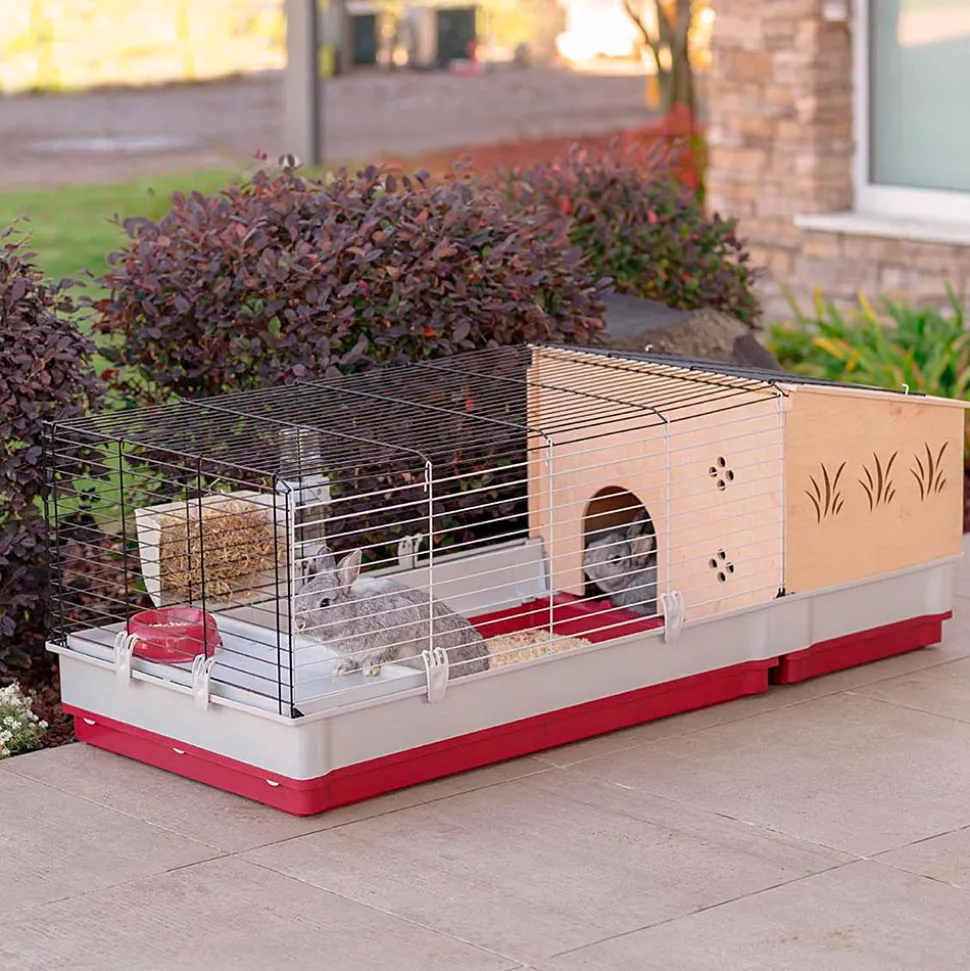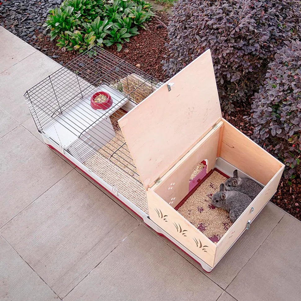 Krolik 140 Plus est une grande cage confortable pour lapins et cobayes. Elle convient aussi pour accueillir plusieurs animaux ensemble. L’habitat a une structure en grillage métallique robuste avec une extension et une maisonnette en bois confortable. Elle est idéale pour assurer à votre animal de compagnie intimité et tranquillité. La cage présente de belles décorations et dispose d’un toit qui s’ouvre pour un entretien rapide. Pour plus de sécurité, le toit peut être bloqué par un crochet en métal. À l’intérieur de la cage, vous pouvez placer les accessoires inclus : maisonnette, mangeoire, ratelier pour le foin et abreuvoir. L’assemblage et l’entretien sont très faciles! L’habitat est équipé de portes frontales utiles qui peuvent être ouvertes. Si nécessaire, le bac en plastique peut être détaché de la structure en grillage métallique. Krolik 140 plus, comme tous les habitats de la même gamme, est caractérisé par une conception innovante en kit avec bac breveté pour garantir plus de surface pour votre animal. La cage est vendue dans un emballage gain de place afin de réduire le volume de transport et occuper le moins d’espace possible lorsqu’elle n’est pas utilisée. Il s’agit d’un excellent produit respectant l’environnement qui fournit plus d’espace pour vos animaux et moins de volume pour vous!