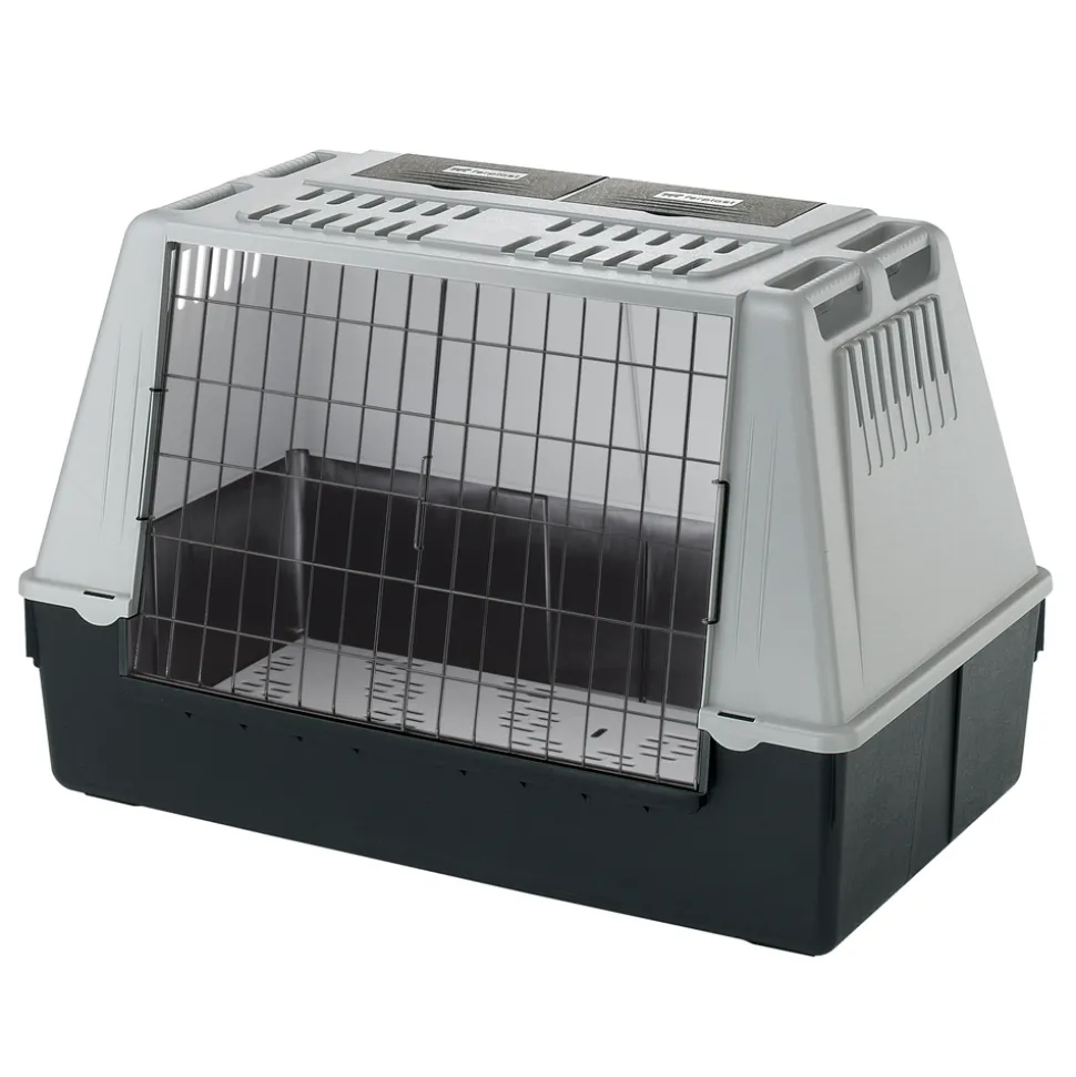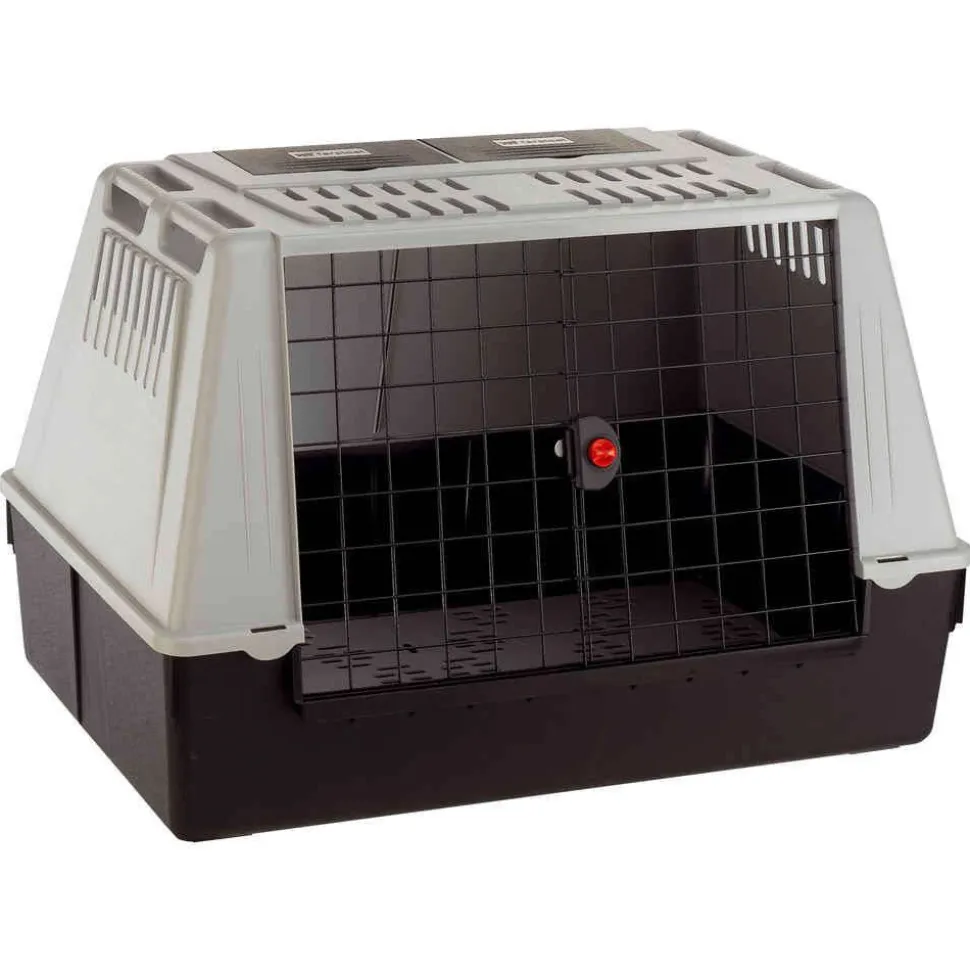 Ce panier de transport Atlas Car 100 vous permettra d’emmener votre animal de compagnie partout avec vous. Votre toutou sera transporté avec tout le confort souhaité grâce à cet accessoire en plastique gris, indispensable à ses déplacements, notamment en avion. Avec ce panier de transport doté d’un tapis hygiénique drainant et d’une poignée télescopique, votre chien voyagera en classe affaires. Et vous pourrez garder l’esprit tranquille. Dimensions: 100 x 60 x 66 cm.