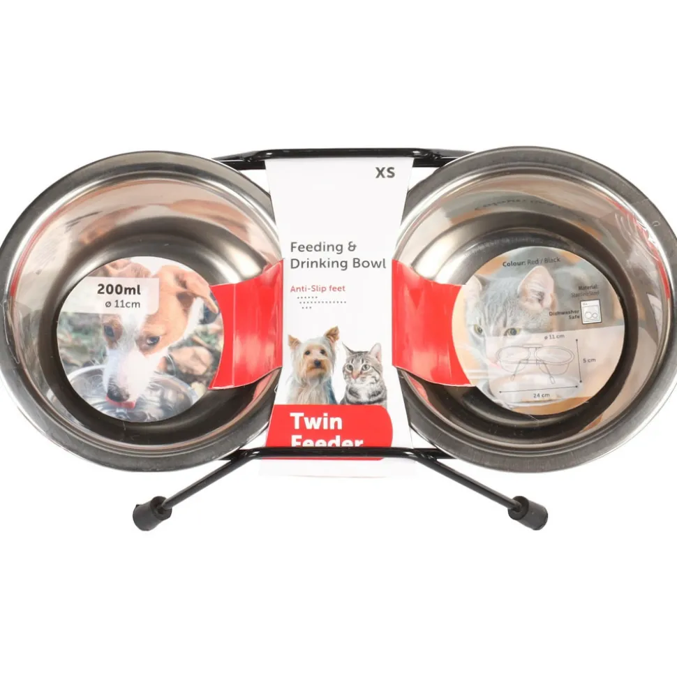 - Ecuelle duo ø 11 cm. 200 ml. avec support Arjun. pour chat et petit chien. taille XS.