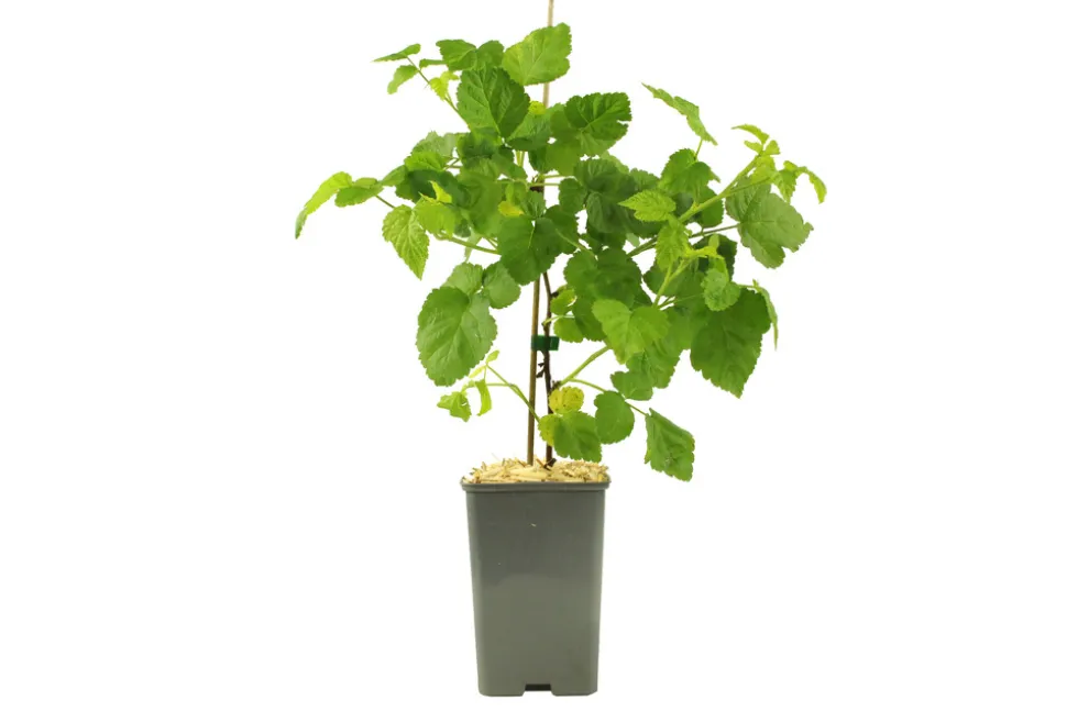 Le Murier Tayberry est une grimpante fruitière. Les muriers sont originaires des zones tempérées et subtropicales. Le Murier Tayberry permet une production précoce de fruits rouges comme des framboises avec une forme allongée de mûre. Ce murier n’a pas d’épines ce qui le rend très appréciable au jardin pour les récoltes faciles. Vous pouvez consommer les mûres à croquer en gourmandise ou en dessert, elles ne contiennent pas de pépins contrairement à la mûre sauvage. Le Mûrier Tayberry est résistant aux maladies comme l’oïdium.