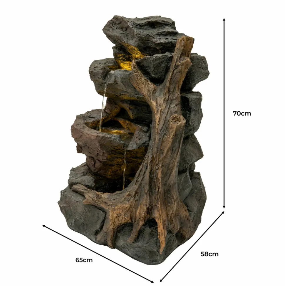 Inspirée des ruisseaux boisés et sculptée en polyresine résistante à l’aspect naturel, cette fontaine à étages apporte un charme rustique et une énergie apaisante à tout espace extérieur.