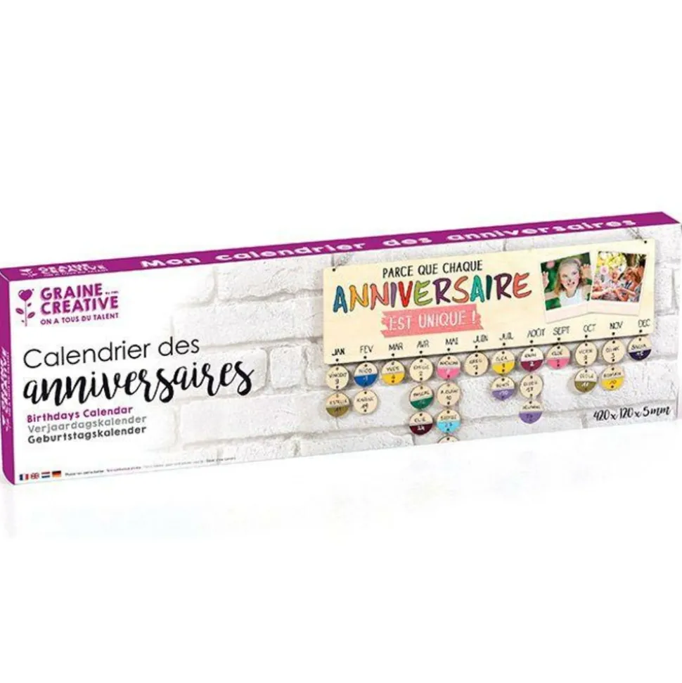 Calendrier anniversaires familial Vous ne vous rappelez jamais des dates d’anniversaire de vos enfants, petits-enfants, cousins ? Le calendrier des anniversaires en pastilles de bois pourra constituer un magnifique aide-mémoire, en même temps qu’un bel objet déco, à actualiser avec les nouvelles naissances. Vous n’oublierez plus aucun anniversaire ! Il pourra constituer un superbe cadeau de fête des mères ou des pères. Calendrier mural en bois avec les mois et des pastilles à décorer pour représenter les anniversaires. Dimensions du calendrier en bois : largeur : 40 cm, hauteur : 12 cm, épaisseur : 5 mm.