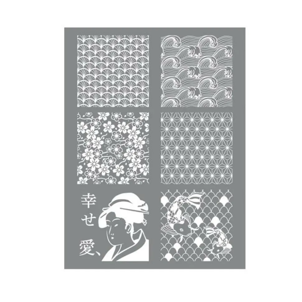 Ce Pochoir pour pâte polymère Japon de chez Graine Créative vous permettra de réaliser facilement de jolies formes – Précision du motif – Utilisation sur pâte crue ou cuite. Réutilisable à volonté – Désign fait en France Dimension : 11,4 x 15,3 cm – 6 carrés de 4,5 x 4,5 cm