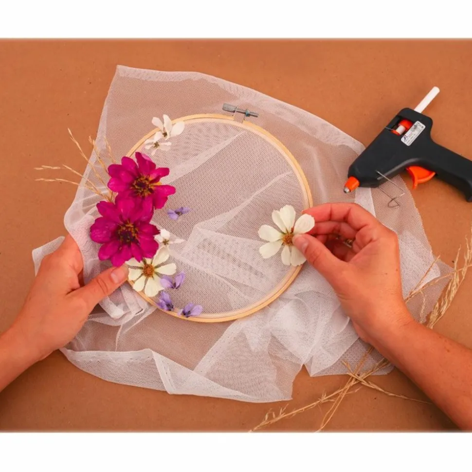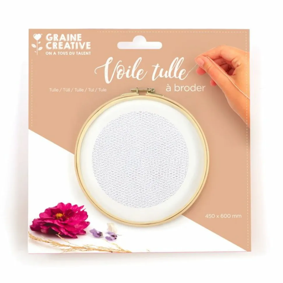 Ce voile de tulle vous permettra de broder tout ce que vous souhaitez (des fleurs, des animaux, des messages鈥également l’utiliser comme support de décoration où coller quelques objets : plumes, fleurs, coquillages… Alors laissez libre cours à votre imagination et votre créativité ! Dimensions du voile de tulle : 60 x 45 cm