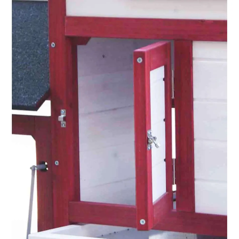 Poulailler standard bi-corps couvert Caractéristiques – Couleur rouge et blanc – Dimensions au sol : 115,5 x 52 cm – Dimensions hors tout : 152 x 62 x H 92 cm – Livré avec espace nuit, espace jour grillagé, rampe d’accès à l’espace nuit/jour, pondoir avec accès par trappe, poignée extérieure pour l’ouverture et la fermeture de la porte de l’espace nuit, toit couverture bitumée 2 pentes – Tiroir à déjections galvanisé permet un nettoyage facile (jet d’eau) – Capacité : 2-3 poules – Labellisé FSC – A monter soi-même