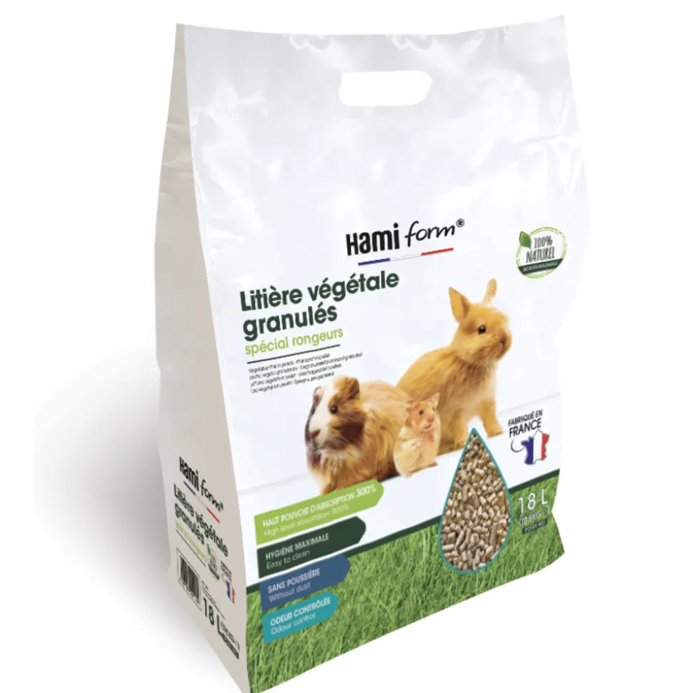 Adaptée aux rongeurs, cette litière végétale de 18 litres se présente sous forme de granulés. 100% naturelle, elle se compose de chanvre, de maïs et de bois. Dépoussiérée avec soin, cette litière ne provoque aucun risque d’allergie ou de phénomène de gêne respiratoire. Comme sa matière poreuse possède un pouvoir absorbant élevé, les odeurs et les liquides sont retenus de manière optimale. Fabriqué en France, ce produit d’origine naturelle a été spécialement conçu pour le bien-être de vos petits animaux de compagnie.