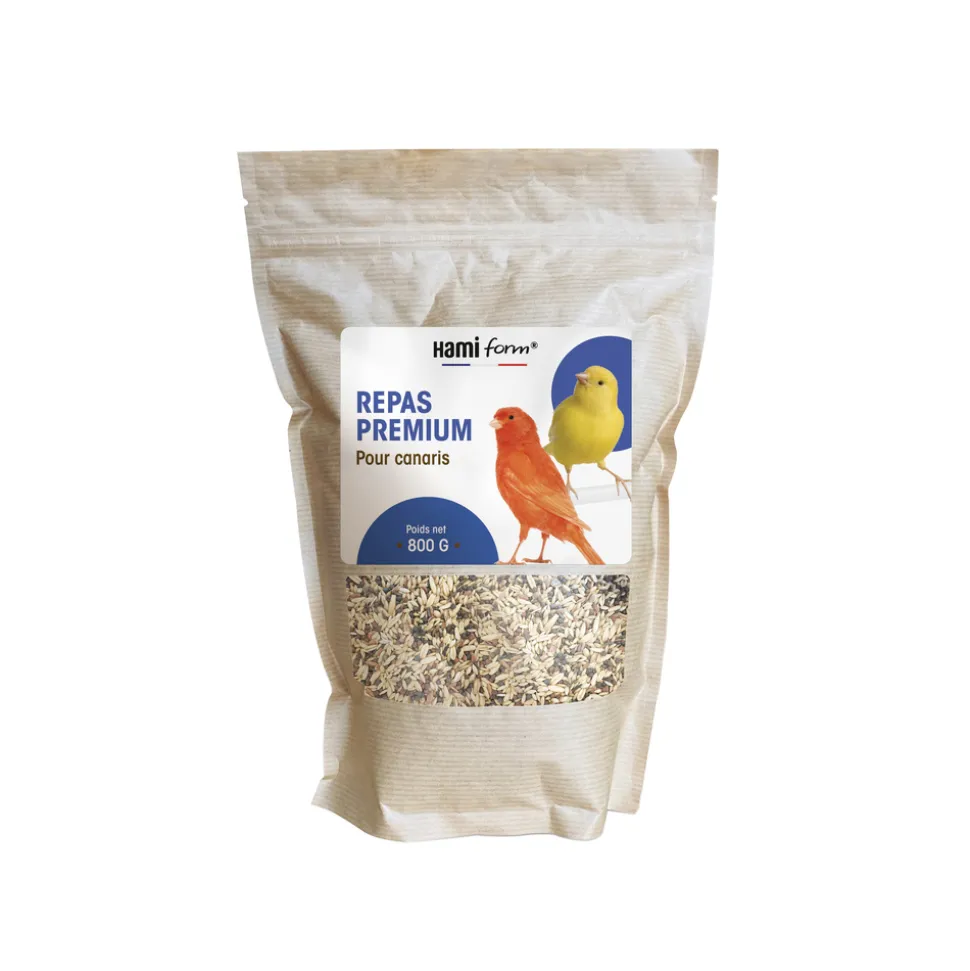 Aliment complet pour canaris. Le mélange Premium Food Hamiform sera distribué quotidiennement dans une mangeoire propre (1 à 2 cuillères à soupe par jour et par oiseau). Votre animal ne doit pas manquer d’eau, régulièrement renouvelée. À conserver dans un endroit sec et dans son emballage d’origine.
