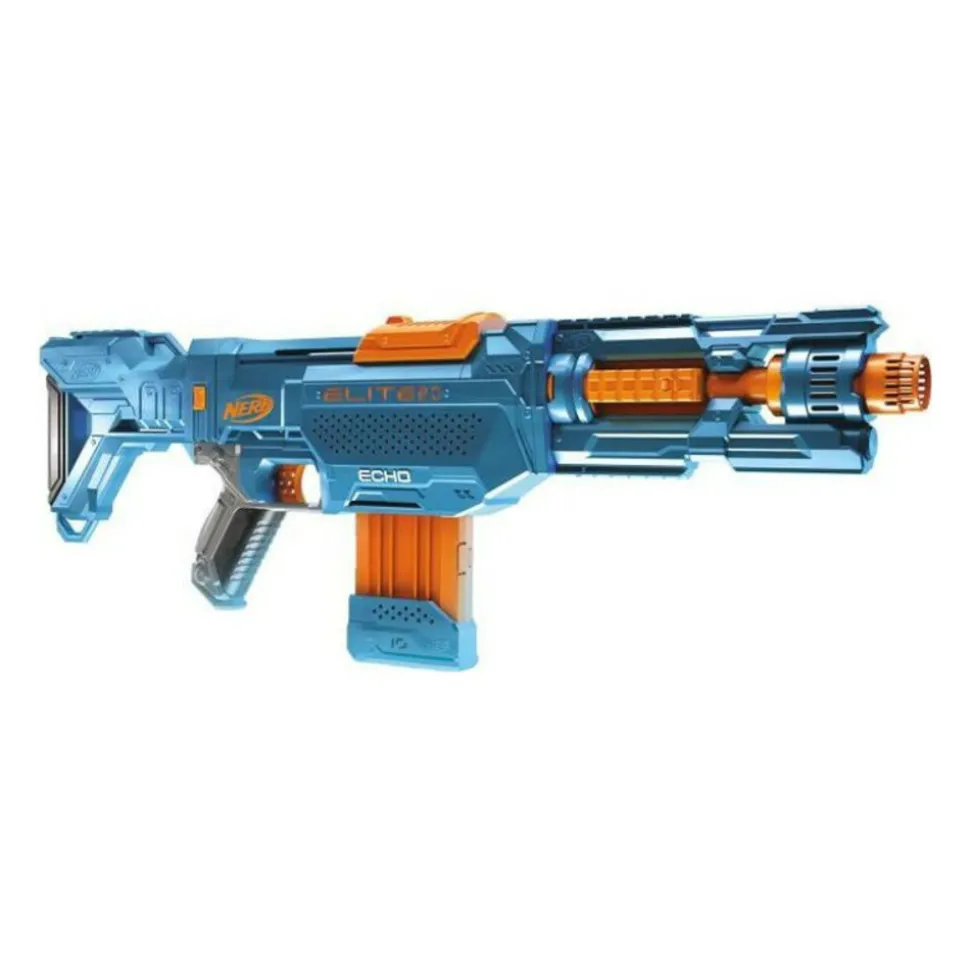 Les blasters Nerf Elite 2.0 sont conçus pour etre personnalisés. On peut changer leur configuration comme on veut pour se donner un avantage durant une compétition Nerf. En plus il y a 2x plus de fléchettes que pour le NERF Elite Delta Trooper ! Les blasters de la gamme Nerf Elite 2.0 permettent d’optimiser sa stratégie et d’etre pret pour toute situation ! Le blaster Nerf Elite 2.0 Echo CS-10 a une crosse amovible et une rallonge de canon amovible permettant de le personnaliser de plusieurs façons. On peut tirer avantage de ses 4 rails tactiques pour ajouter d’autres accessoires (non inclus). Le blaster a un chargeur 10 fléchettes pour tirer une douzaine de fléchettes de suite. On peut tirer une fléchette a la fois ou 10 fléchettes rapidement en actionnant le mécanisme a répétition du blaster a pompe. Vendu avec 24 fléchettes NERF Elite officielles (2x + que pour le Nerf Elite Delta Trooper) : on en insere 10 dans le chargeur et on garde le reste pour les recharges. Tire jusqu’a une distance de 27 metres. Aucune pile requise. Le port de lunettes de protection (non incluses) est recommandé Nerf et toutes les marques associées sont des marques de commerce de Hasbro.