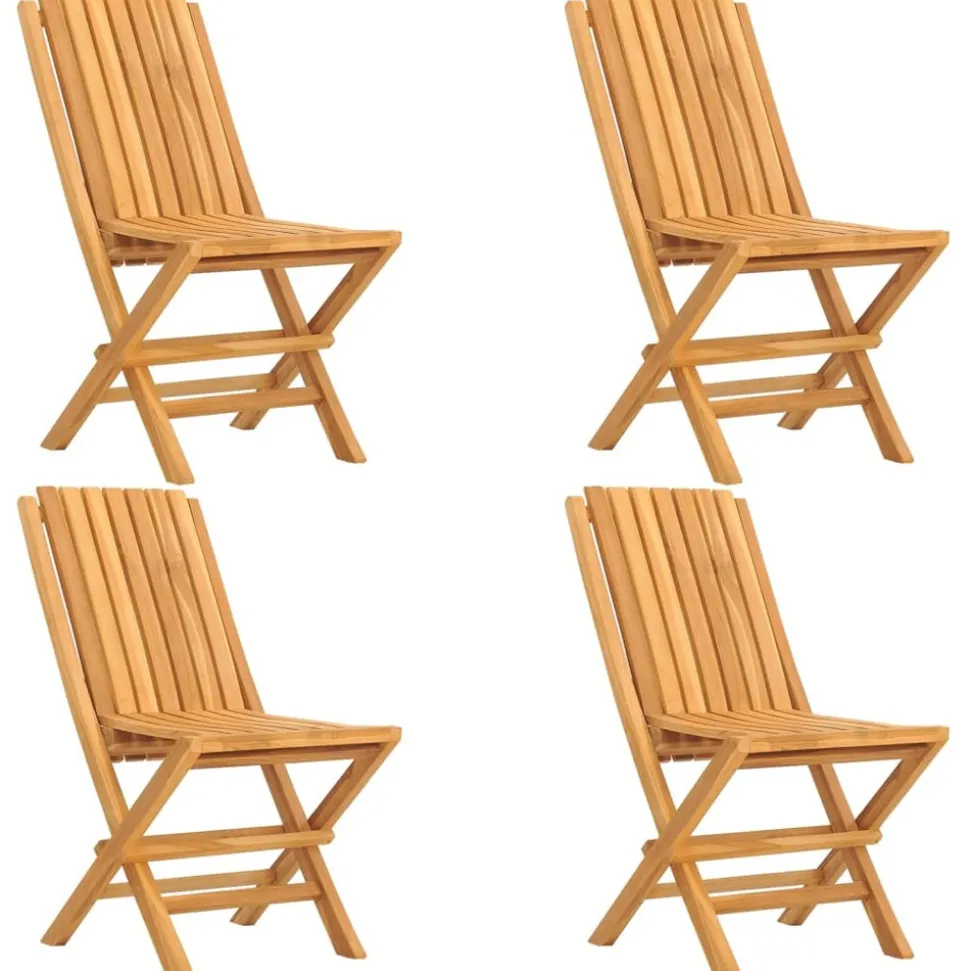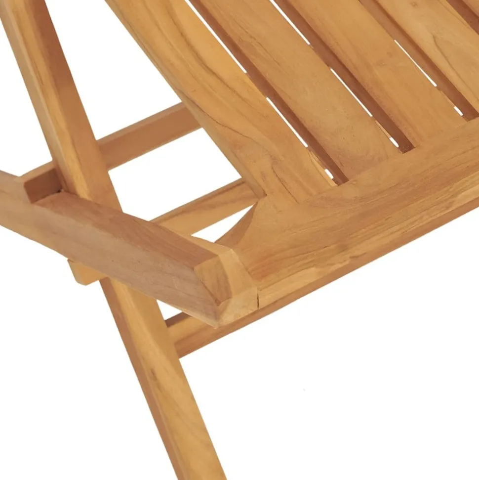Détendez-vous et profitez d’un thé et de repas agréables avec votre famille et vos amis grâce à cet ensemble de salle à manger de jardin en bois classique ! Bois de teck massif : l’ensemble de salle à manger est fabriqué en bois de teck massif. Le bois de teck massif est un matériau naturel magnifique. Il a été chevronné, séché au four, puis sablé finement pour lui donner une apparence très lisse. Le bois de teck est connu pour sa résistance exceptionnelle et sa résistance aux intempéries. Fonction pliable : l’ensemble de salle à manger d’extérieur peut être plié pour économiser de l’espace lorsqu’il n’est pas utilisé. Expérience confortable : le dossier de la chaise de jardin vous offre un excellent soutien, offrant une expérience confortable optimale. Dessus de table robuste : le dessus de table robuste de la table à manger est parfait pour placer des repas, des boissons, des vases, des bols de fruits ou d’autres objets décoratifs. Trou pour parasol : le dessus de table est doté d’un trou pour parasol, ce qui vous permet de fixer facilement un parasol pour créer un coin ombragé. Design à lattes : la chaise à manger d’extérieur conçue avec un design à lattes est simple et intemporelle. Remarque :Pour que vos meubles d’extérieur restent beaux, nous vous recommandons de les protéger avec une housse imperméable. Table : Matériau : bois de teck massif avec finition à base d’eau Dimensions : 85 x 85 x 76 cm (L x l x H) Diamètre du trou de parasol : 5 cm Chaise pliable de jardin : Matériau : bois de teck massif avec finition à base d’eau Dimensions (chacune) : 47 x 47 x 89 cm (L x l x H) Dimensions du siège : 36 x 42 cm (l x P) Hauteur du siège à partir du sol : 45 cm Capacité de charge maximale (par siège) : 110 kg L’assemblage est requis La livraison contient : 1 x table 4 x chaise pliable de jardin