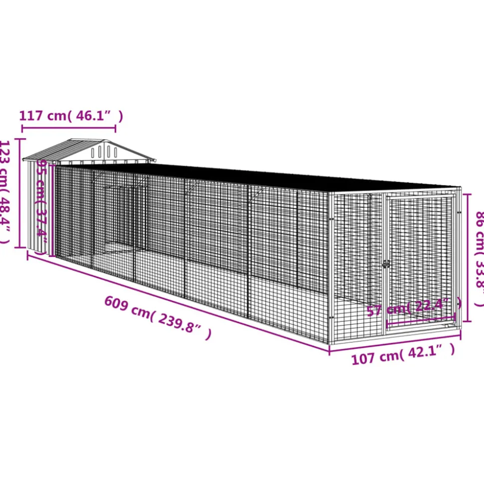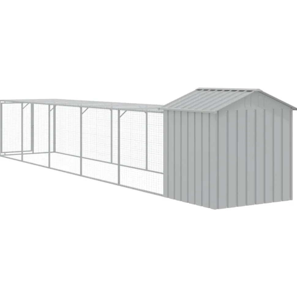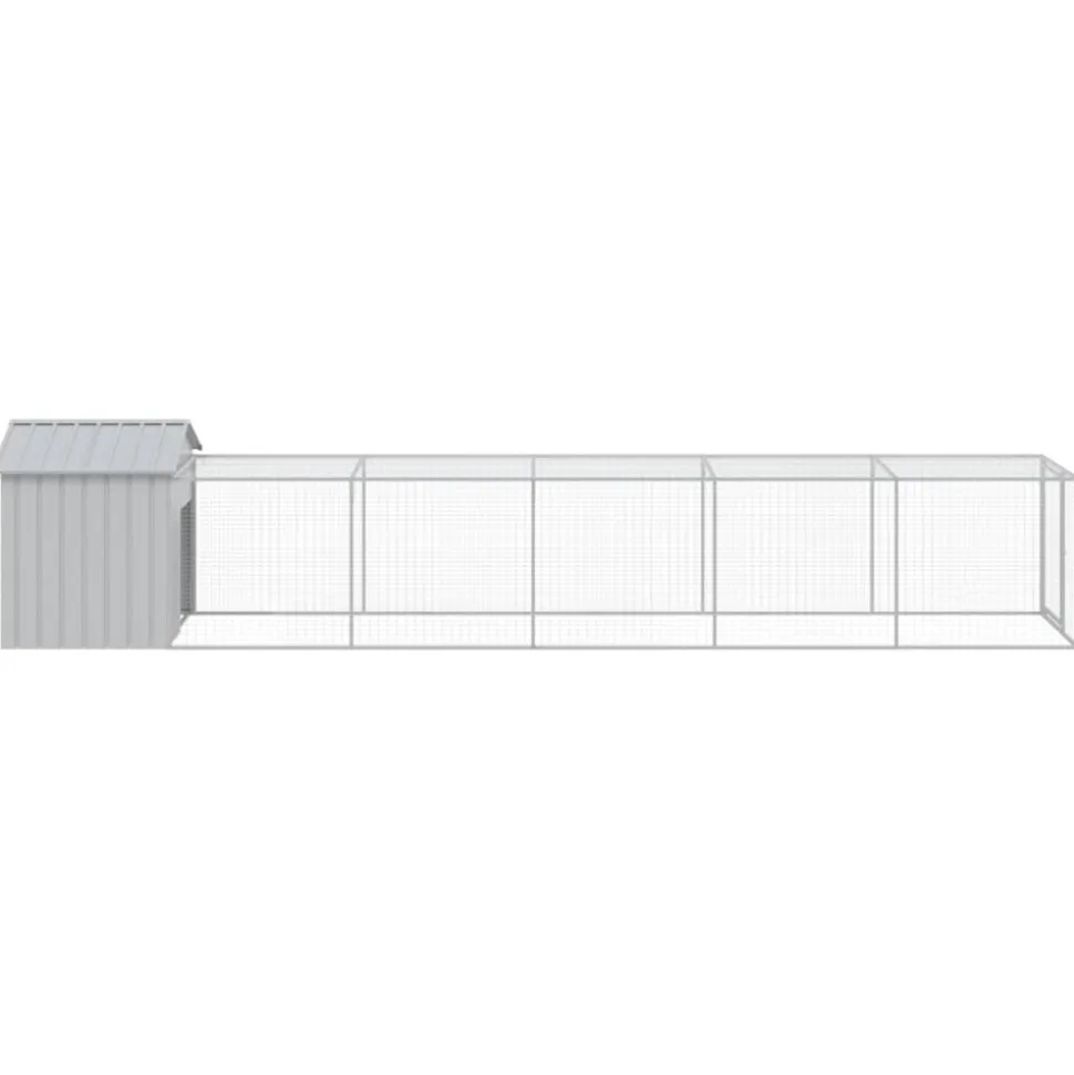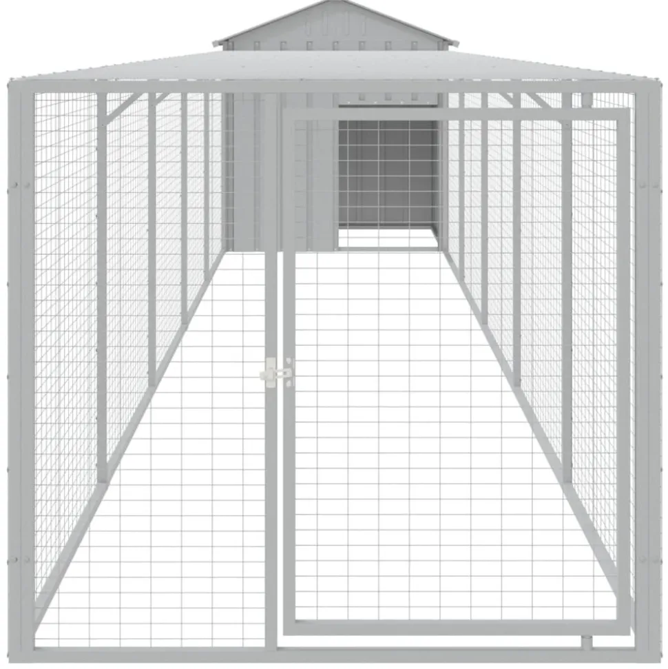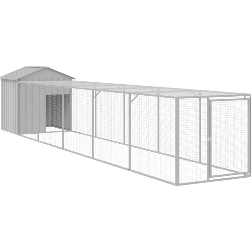 Ce poulailler avec cour est un choix parfait pour vos poulets, poules et autres petits animaux et les maintient à l’aise. Utilisation polyvalente : combiné avec la cour étendue, le poulailler polyvalent offre beaucoup d’espace à vos poules. Il présente de multiples utilisations : jouer, faire de l’exercice ou simplement garder vos poules en sécurité. Ce sera le paradis de jeu parfait pour vos animaux !Construction durable : grâce à sa construction robuste en acier galvanisé, le poulailler est durable et fait pour durer. Conception en maille : la conception en maille du poulailler aide à prévenir les méfaits et les accidents inattendus tout en permettant la ventilation. Toit pratique : le toit du poulailler protège les poulets du soleil, de la pluie, de la neige et d’autres conditions météorologiques. Accès pratique : il y a une entrée à la maison pour animaux et une porte avec un loquet sur la cour prolongée, les deux facilitant l’entrée et la sortie. Couleur : gris clair Matériau : acier galvanisé Dimensions totales : 117 x 609 x 123 cm (l x P x H) Poulailler : Dimensions extérieures : 117 x 103 x 123 cm (l x P x H) Dimensions intérieures : 104 x 90 x 120 cm (l x P x H) Taille de l’entrée : 47 x 70 cm (l x H) Cour étendue : Dimensions extérieures : 107 x 511 x 95 cm (l x P x H) Dimensions intérieures : 104 x 508 x 92 cm (l x P x H) Dimensions de la porte : 57 x 86 cm (l x H) L’assemblage est requis La livraison contient : 1 x poulailler 1 x cour étendue