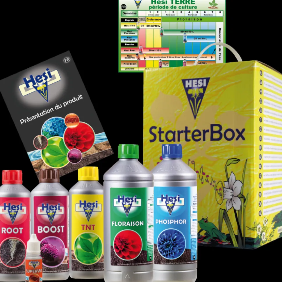 La StarterBox Terre contient les engrais de croissance et de floraison, les additifs et stimulants pour la culture des végétaux en substrat terre et terreau.
