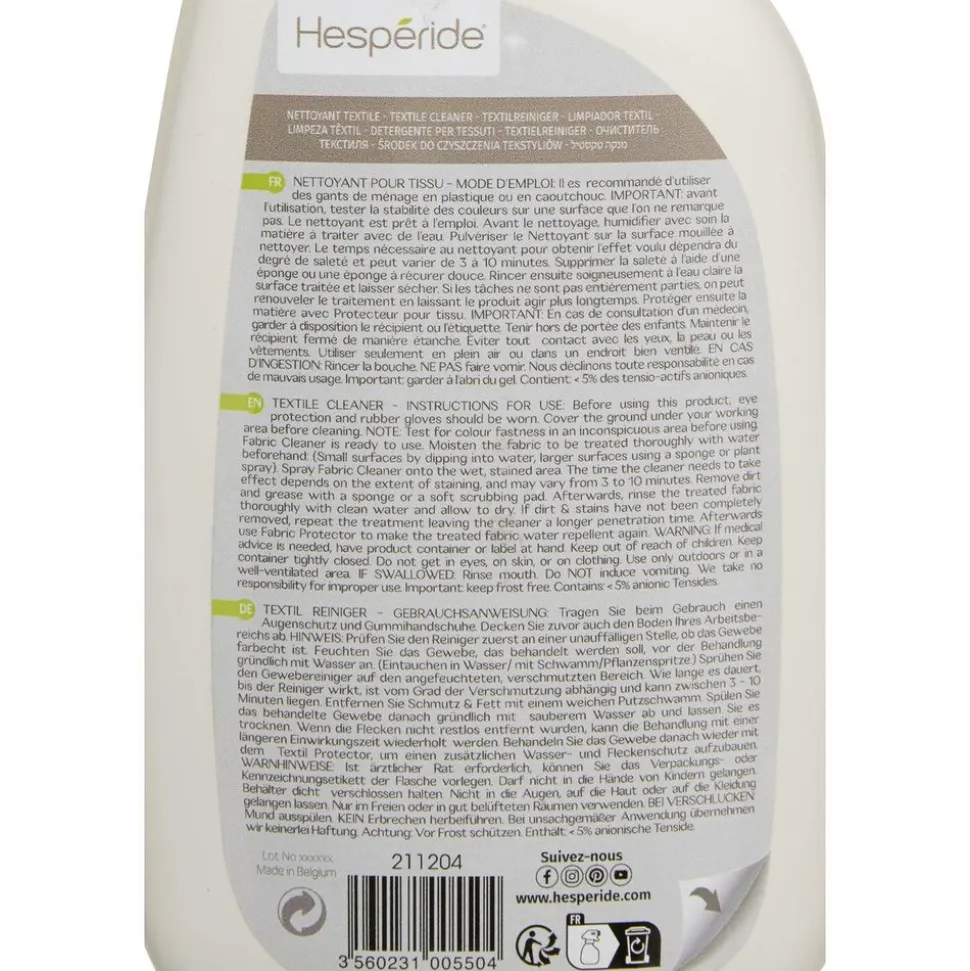 Ravivez l’éclat de vos textiles d’extérieur avec le nettoyant pour textiles extérieurs Hespéride. Spécialement conçu pour éliminer les taches et lutter contre les effets du temps, des UV et des intempéries, ce produit redonne à vos coussins, parasols et autres tissus d’extérieur leur aspect d’origine.