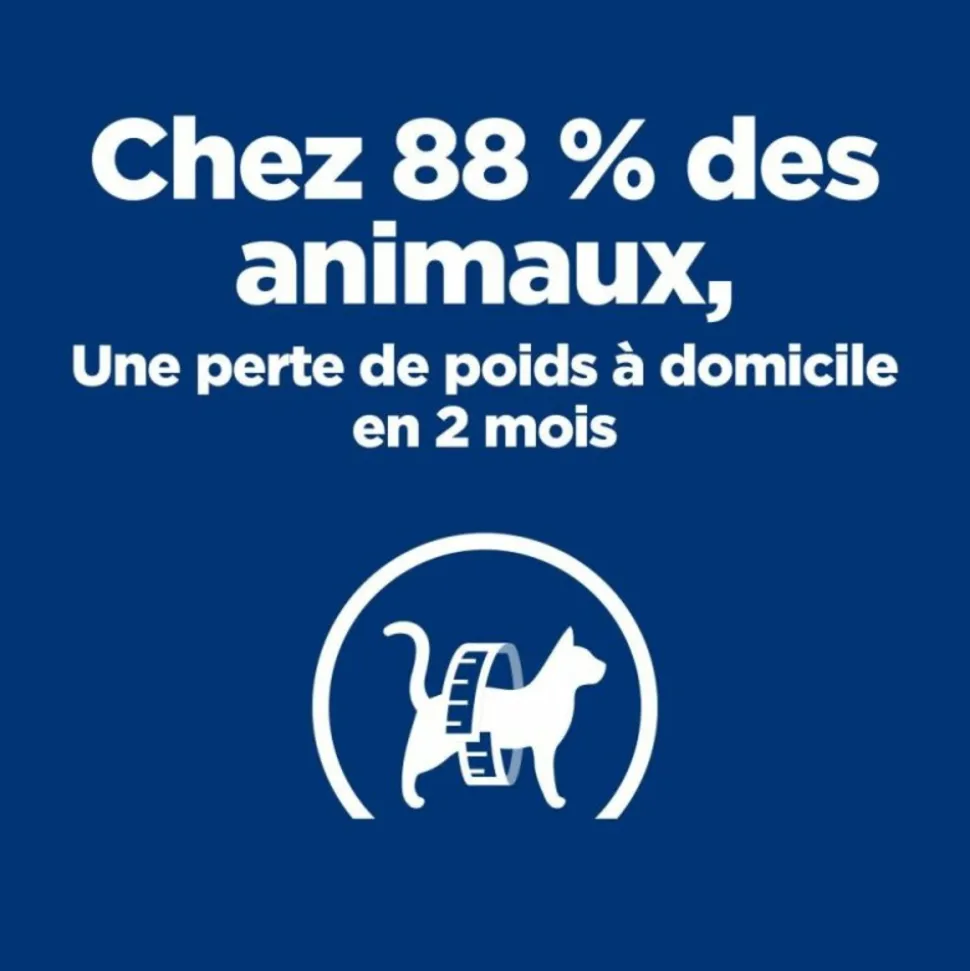 – 81% des chats ont perdu du poids en 2 mois à domicile, 89% des chats ont terminé le programme de perte de poids