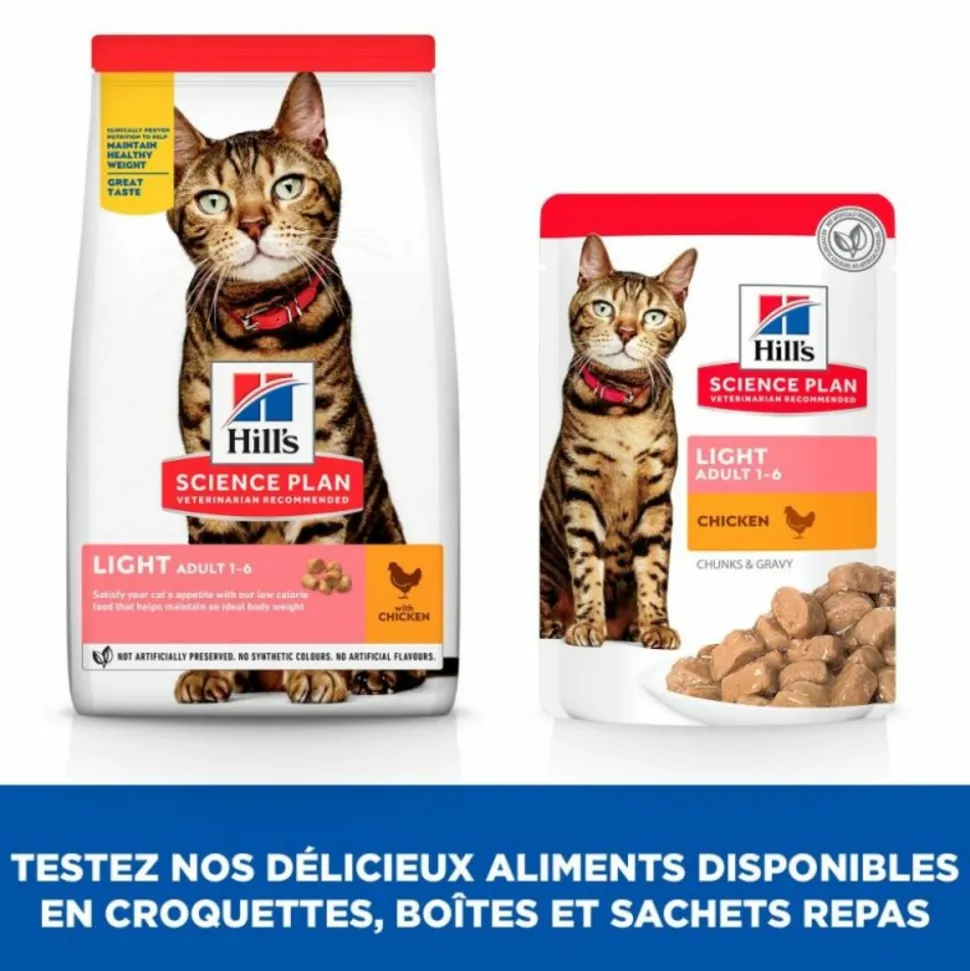 Les croquettes chats HILL’S SCIENCE PLAN ADULT LIGHT POULET sont des croquettes complètes diététiques pour chats adultes de 1 an et plus , qui présentent le parfait équilibre entre goût et nutrition. Parfaitement équilibré pour apporter aux chats l’alimentation équilibrée dont ils ont besoin pour maintenir un poids et un mode de vie sains.