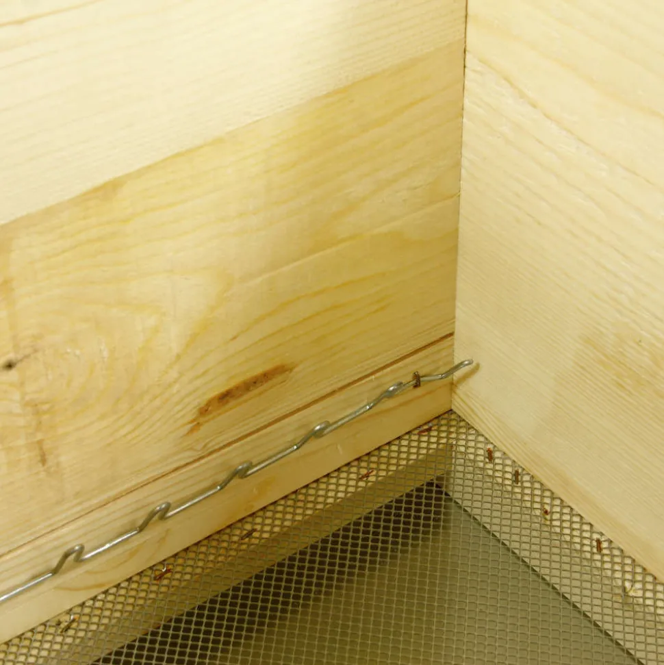 La ruche Dadant 10 cadres est la ruche la plus usitée en France. Elle représente le modèle standard pour tous les éleveurs d’abeilles. Cette ruche Dadant est une caisse en bois de forme carrée à toit Chalet sur laquelle peuvent s’emboiter une ou plusieurs hausses. La caisse, en pin sylvestre, est composée de plusieurs éléments indépendants superposés : un toit chalet recouvert de tôle, un plateau (couvre-cadres sans aération), le corps de la ruche où l’on peut entreposer 10 cadres vendus séparément (à remplir préalablement de cire gaufrée), un plancher, et un trou de vol pour permettre les allers et venues des abeilles. L67 x l54 x H49cm