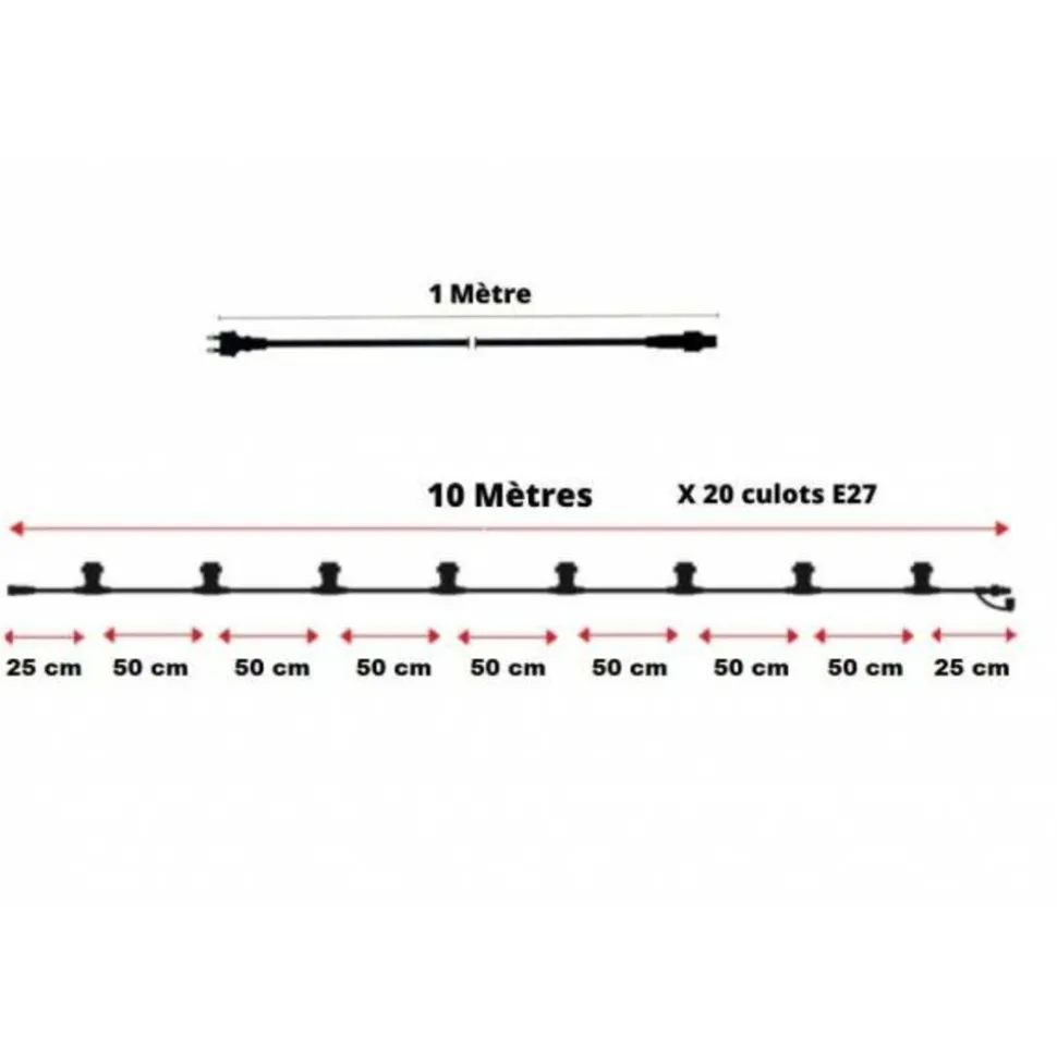 Illuminez vos espaces extérieurs avec notre Guirlande guinguette extérieur 10M, une solution d’éclairage polyvalente et élégante. Cette guirlande de 10 mètres est équipée de 20 ampoules LED blanc chaud, chacune d’une puissance de 1W, pour une efficacité énergétique et longévité. La base E27 facilite le remplacement des ampoules si nécessaire. Le câble est noir et extensible, permettant un placement flexible et une installation facile.