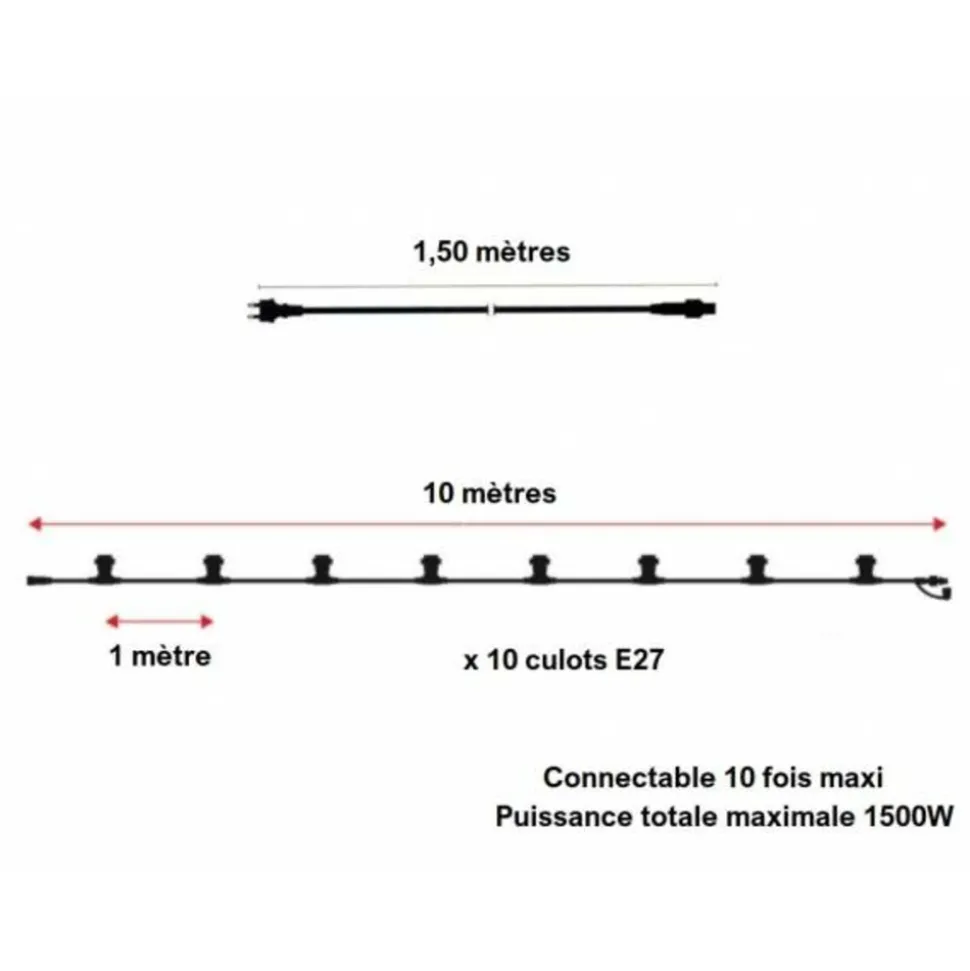 Illuminez vos espaces extérieurs avec la Guirlande guinguette extérieure IP65 10M 10 ampoules 2W plastique blanc chaud 2700K LED câble plat noir extensible PRO. Cette guirlande LED durable est conçue pour une utilisation intérieure et extérieure, avec une classification IP65 qui garantit une protection contre la poussière et l’eau. Avec 10 ampoules LED blanc chaud, chacune produisant 2W de puissance, cette guirlande offre une ambiance chaleureuse parfaite pour tout cadre.