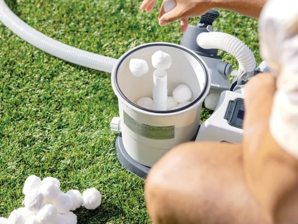 Les balles filtrantes textiles pour filtre à sable Intex offrent une performance de filtration supérieure. Avec les balles filtrantes, fini les contre-lavages tous les 10 à 15 jours : 1 lavage 1 à 2 fois par an seulement. Nouveau média filtrant ayant les mêmes fonctions que le sable ou le verre. Finesse de filtration : 3 à 5 microns. Pour les nettoyer, rien de plus simple : il suffit de les mettre dans un filet et de les passer en machine à laver. Durée de vie : 3 à 5 ans. Vendu en carton de 500 g. 500 g de balles filtrantes Intex équivalent à 18 kg de sable.