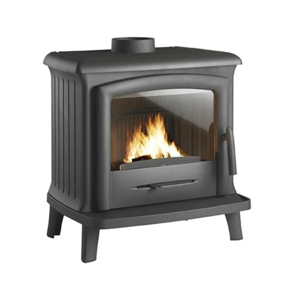 Poêle à bois Norik – Aménagez-vous un coin de paradis et succombez aux délices et au bien être offerts par le très actuel poêle à bois Norik – Tout fonte anthracite – Largeur de bûche maximale 50 cm horizontalement – Air secondaire réglable : l’ air secondaire protège la vitre contre la fumée et le dépôt de suie. Il assure la combustion des matières volatiles. Le débit réglable d’air secondaire permet d’adapter le fonctionnement de l’appareil à des conditions de tirage trop élevées – Combustion prolongée 8 heures : capacité de l’appareil à fonctionner en combustion lente pendant 8 heures sans recharge en combustible et sans intervention extérieure. Une réserve de braises est retrouvée à l’issue de cette période. Il suffit de recharger l’appareil en combustible pour le redémarrer – Post combustion : injection d’air préchauffé dans la chambre de combustion. L’arrivée d’air supplémentaire par l’arrière permet de détruire les hydrocarbures à haute température. La combustion est complète et la pollution réduite – Système Vitre propre – Régulation manuelle – Raccordement arrière ou dessus Ø 150 mm. Le prix indiqué comprend la TVA à 20%.