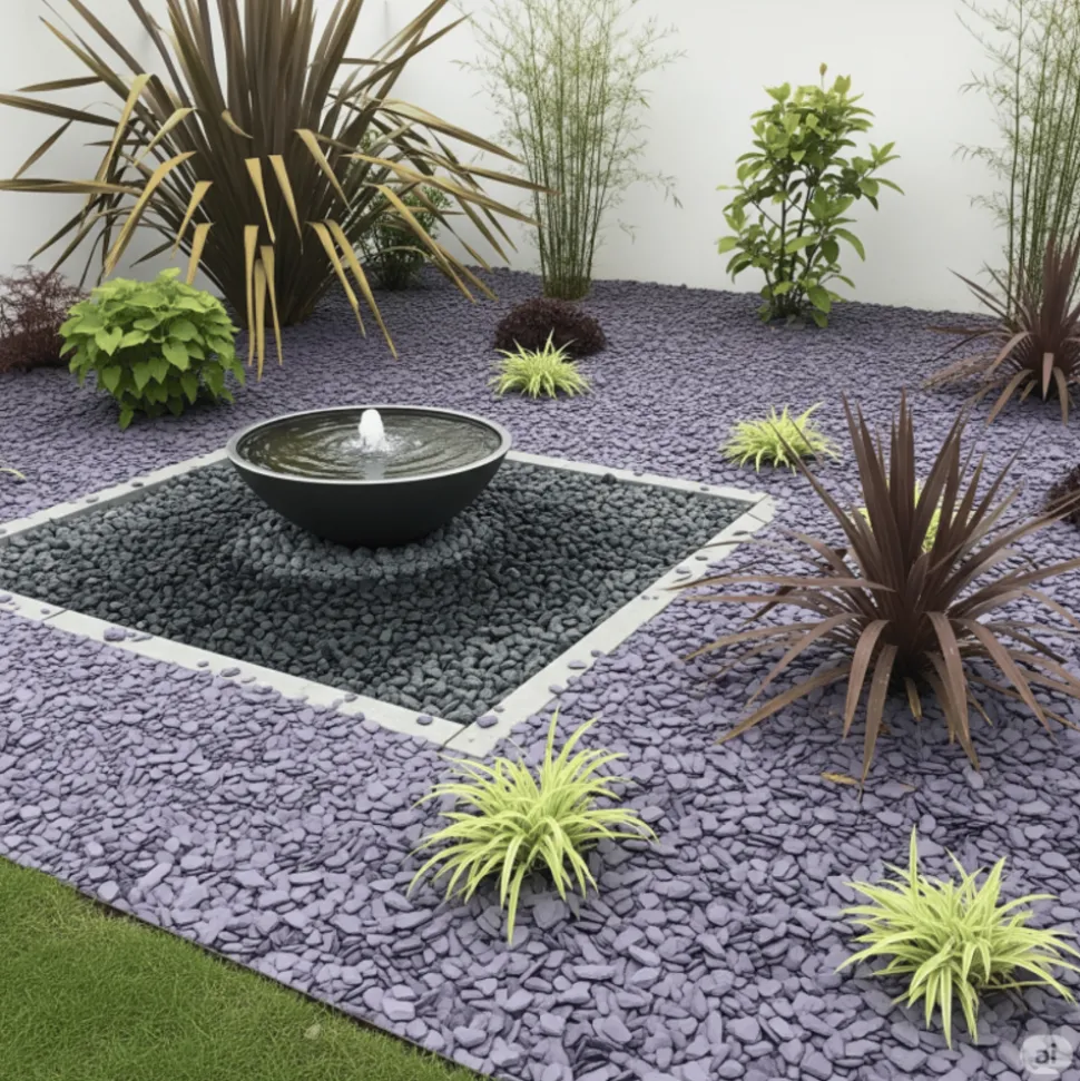 Paillage décoratif original : Utilisez-les pour sublimer vos massifs, parterres, rocailles et allées. La couleur violette crée un contraste saisissant avec la verdure des plantes, les floraisons ou d’autres matériaux minéraux. Au-delà de l’esthétique, elles limitent la croissance des mauvaises herbes et réduisent l’évaporation de l’eau, aidant ainsi à maintenir l’humidité du sol (nous recommandons d’installer un géotextile sous le paillage ardoise).