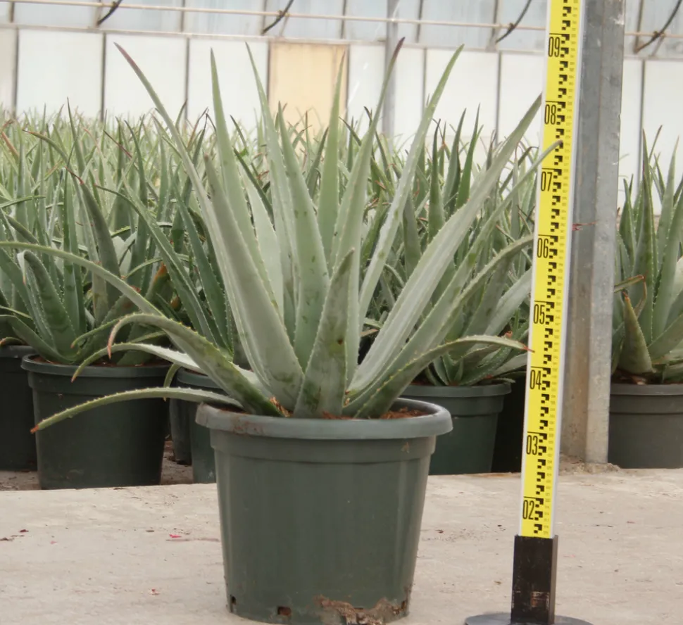 L’aloe vera est une plante vivace qui pousse en formant des rosettes rigides de feuilles. Ces dernières de couleur vert taché de blanc sont en forme de lance et peuvent mesurer jusqu’à 50cm de long. Elles sont bordées de dents blanchâtres. Les feuilles mûrissent en devenant gris-vert. Adulte, l’Aloe peut mesurer 1m de haut. Sa floraison se compose de fleurs jaunes en grappes au sommet de tiges pouvant mesurer 1m. Elle possède de nombreuses vertus cicatrisantes et cosmétiques (on utilise son gel). On retrouve ce dernier dans de nombreux cosmétiques car il a une grande capacité à hydrater la peau sèche. Mais on peut l’utiliser dans d’autres domaines : voir ci dessous