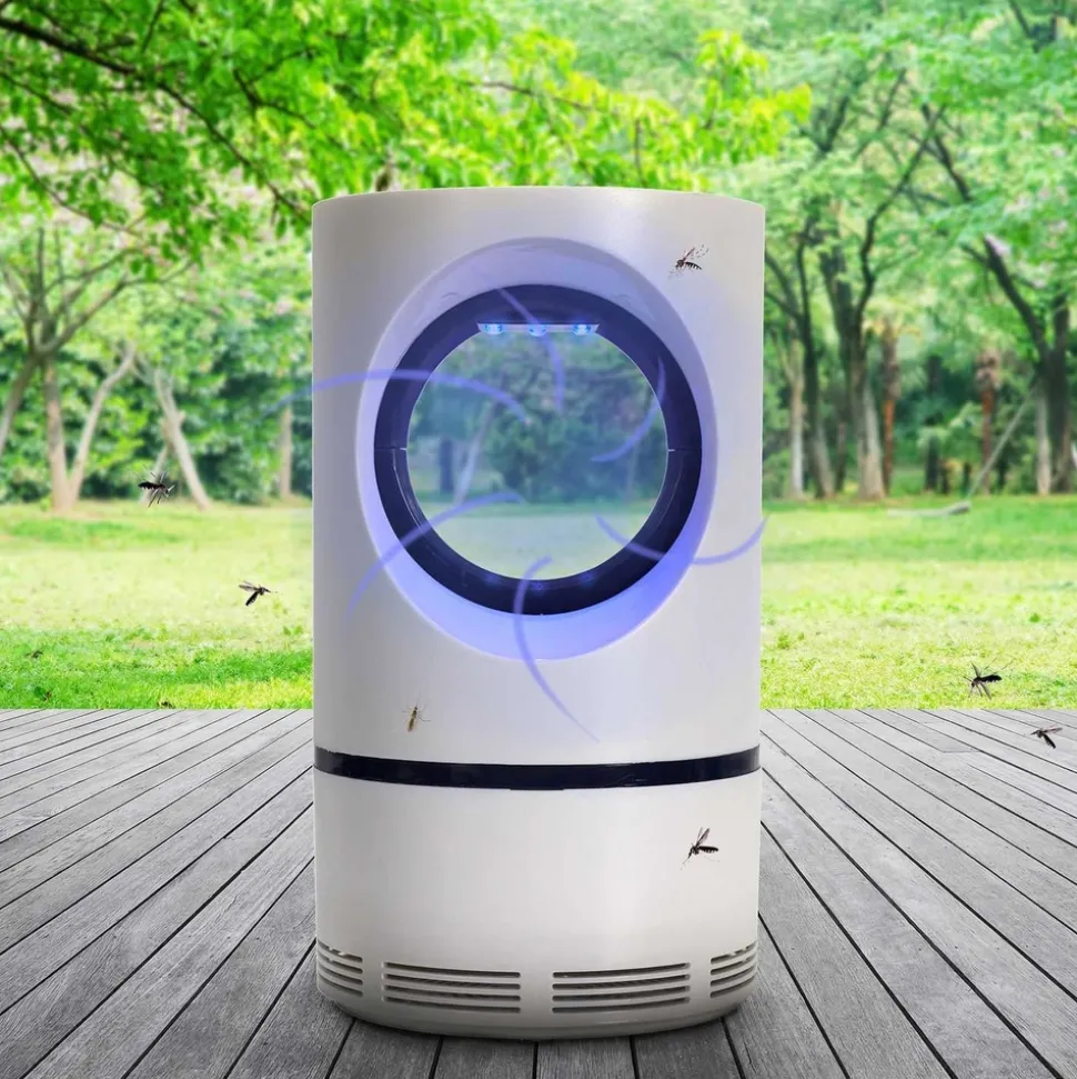 Cet anti-moustique attire les insectes avec la lumière bleue avant des les aspirer ! – Composition : Plastique