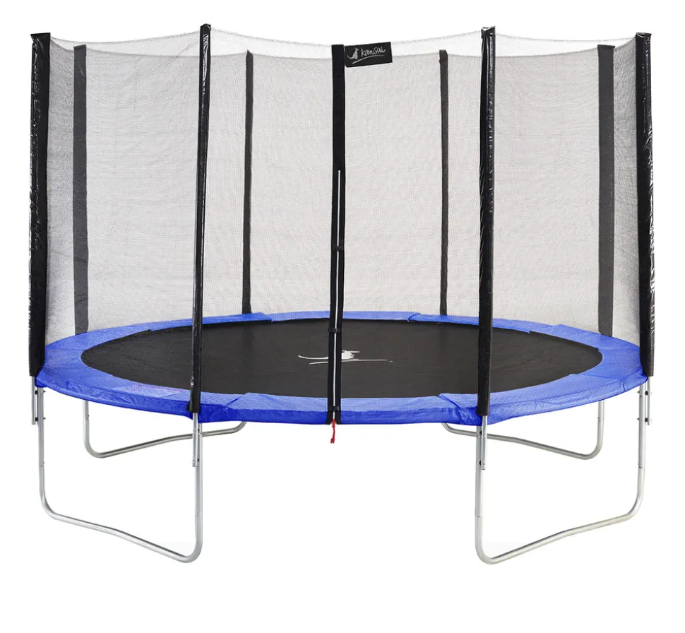 • Pour faire du sport sereinement, le trampoline est sécurisé par un filet haut (1,80m à partir du tapis) et à petites mailles pour éviter de passer même un petit doigt. L’accès au trampoline est facile grâce au zip de la porte. Sa petite cordelette rouge permet de vite repérer entrée et sortie.