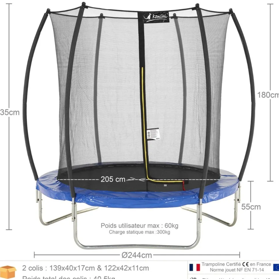 Trampoline de jardin 250cm avec filet de sécurité intérieur :