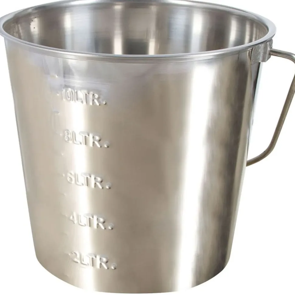 Ce seau à mesurer de Kerbl est un outil agricole pratique pour mesurer des liquides. Le seau est en acier inoxydable avec une poignée latérale mince. Le seau a été complètement traité avec un vernis brillant, ce qui lui donne un aspect lustré et brillant. Cette grande cuve a une capacité de 12,3 litres.
