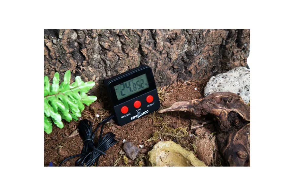 Ce petit thermomètre digital est l’outil idéal pour surveiller précisément la température dans vos terrariums ou incubateurs. Facile à installer et à utiliser, il est équipé de deux sondes à fil pour contrôler la température de différentes zones de votre installation, tout en affichant aussi la température ambiante de la pièce.