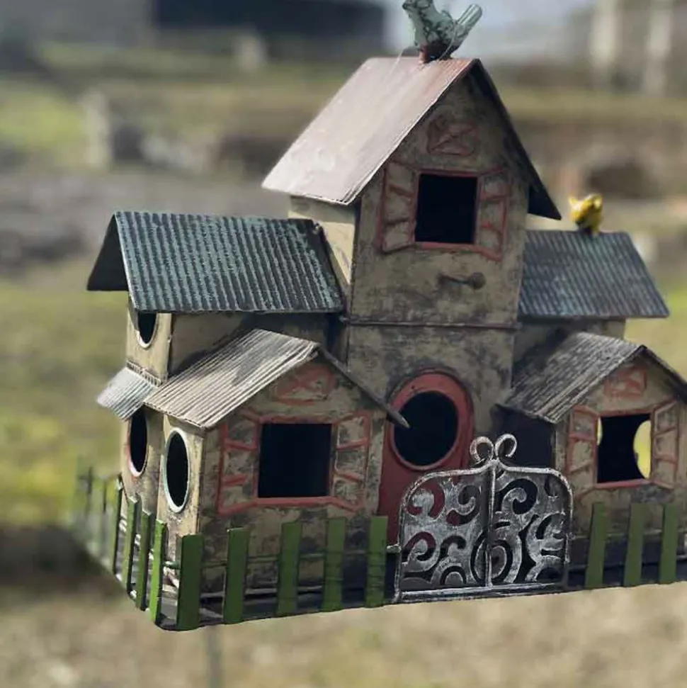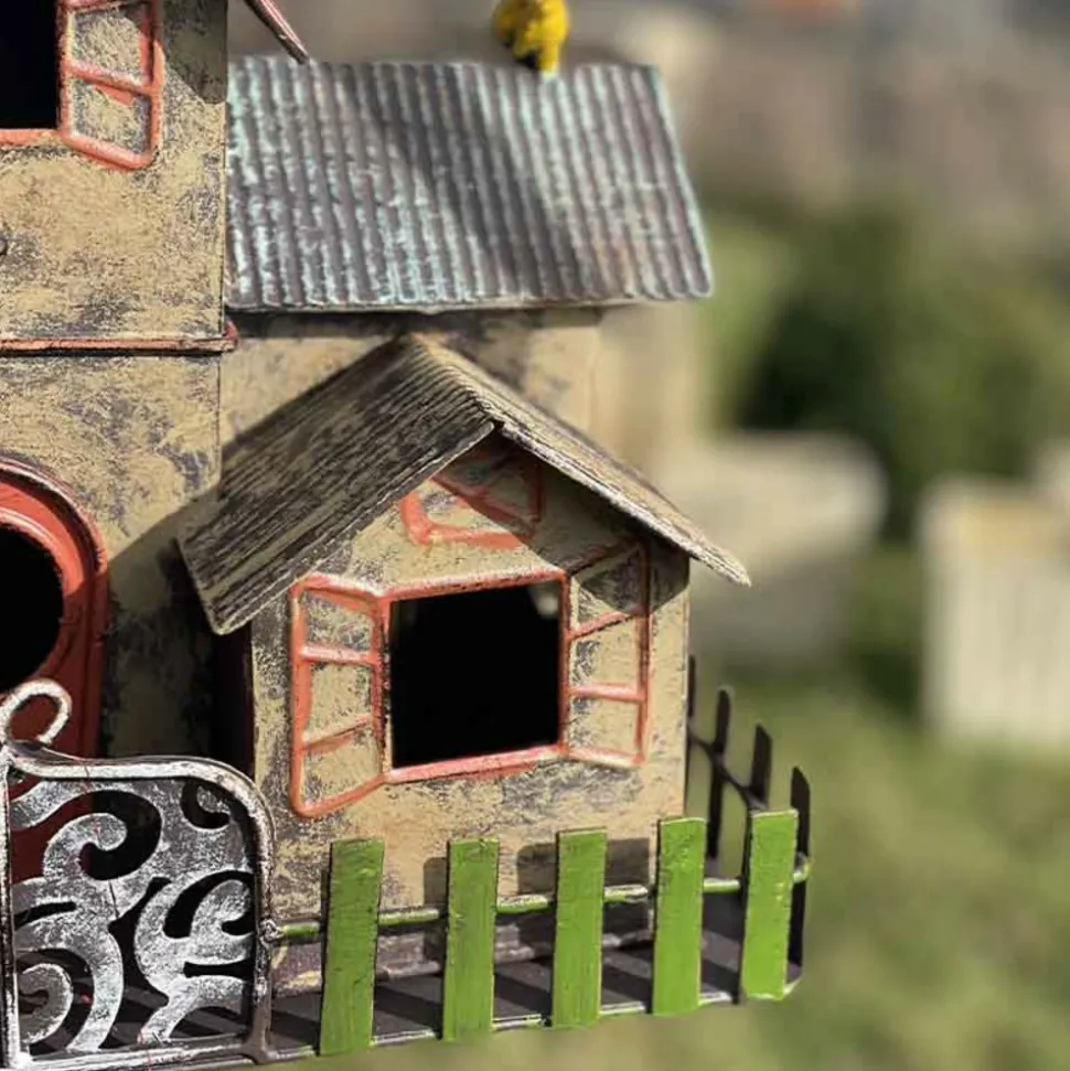 Apportez une touche de magie et de couleur à votre jardin avec ce nichoir unique en forme de maisonnette.