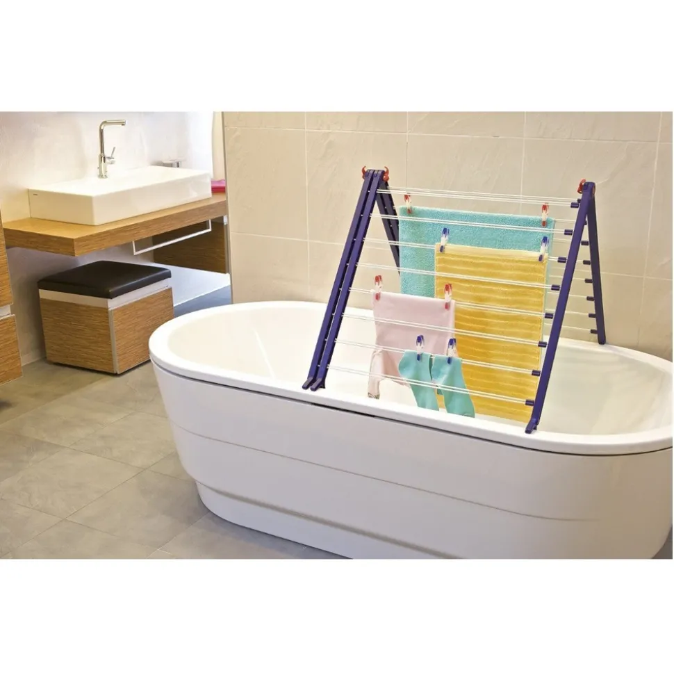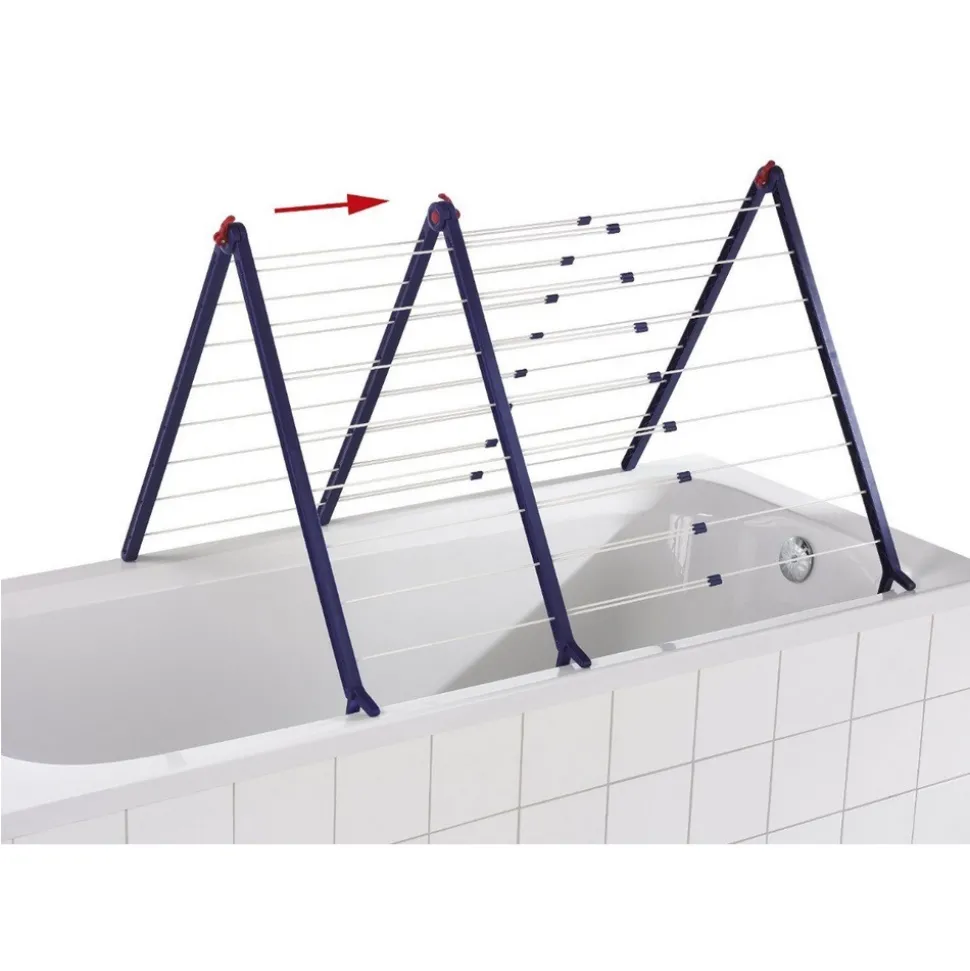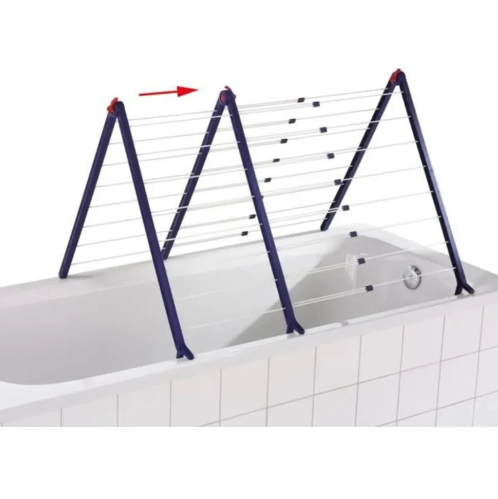 Séchoir baignoire – Pégasus V Duo – Vous manquez de place ? Grâce à ce séchoir . vous pourrez étendre votre linge au-dessus de votre baignoire – Doté de tringles extensibles. il s’adapte à taille de la baignoire et à la quantité de linge – Il se dédouble sur le côté – Il peut être employé sur tous les modèles courrants de baignoire . dans diverses positions et sans installation préalable – Matériaux solides et anti-rouille – L’envergure est réglable sans cran jusqu’à 180° – Longueur d’étendage de 9.6 m à 18.9 m jusqu’à 2 machines – Largeur 68 à 124 cm – Convient aussi pour le séchage à plat des pulls délicats – Garanti 3 ans .