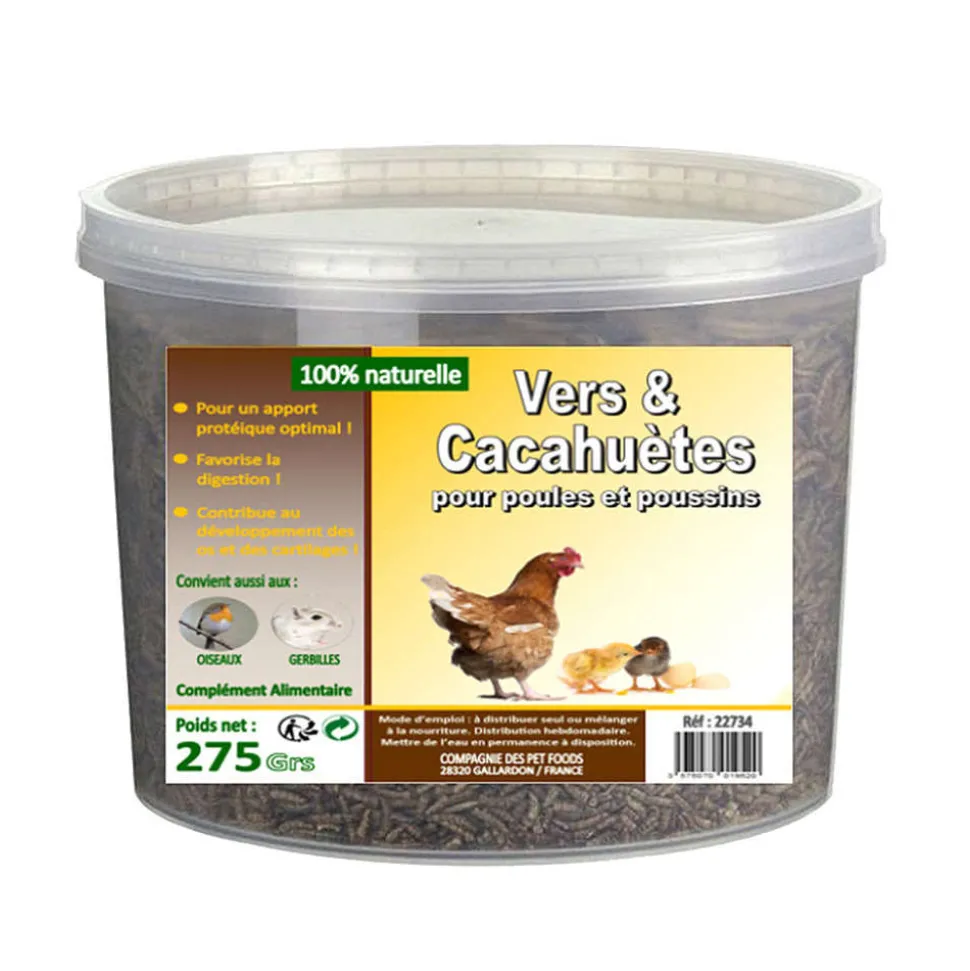 Ces vers et cacahuètes pour poule peuvent être distribués à la volée. Ils peuvent également être mélangés à la nourriture du quotidien.