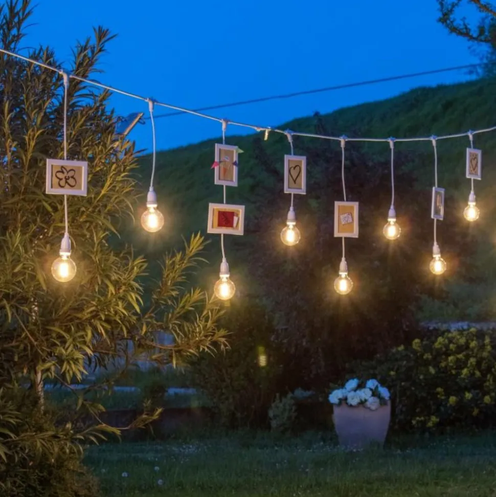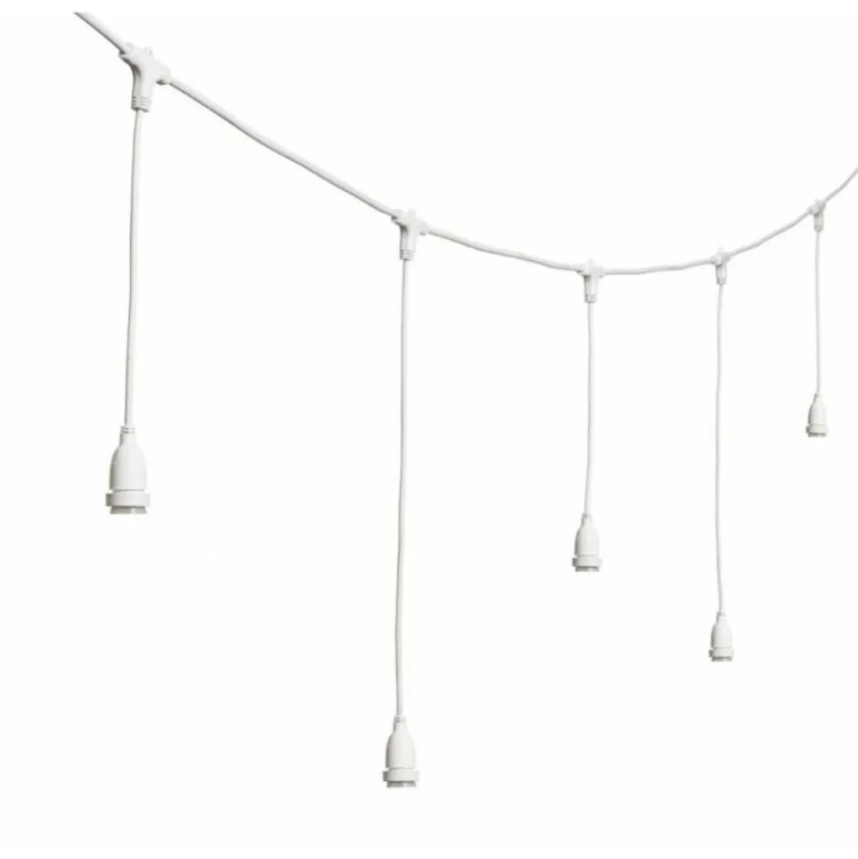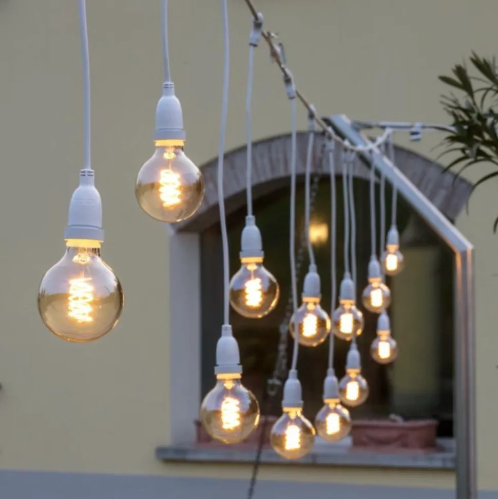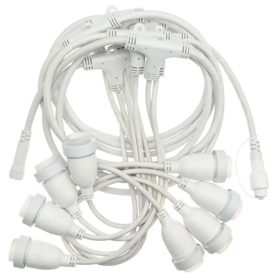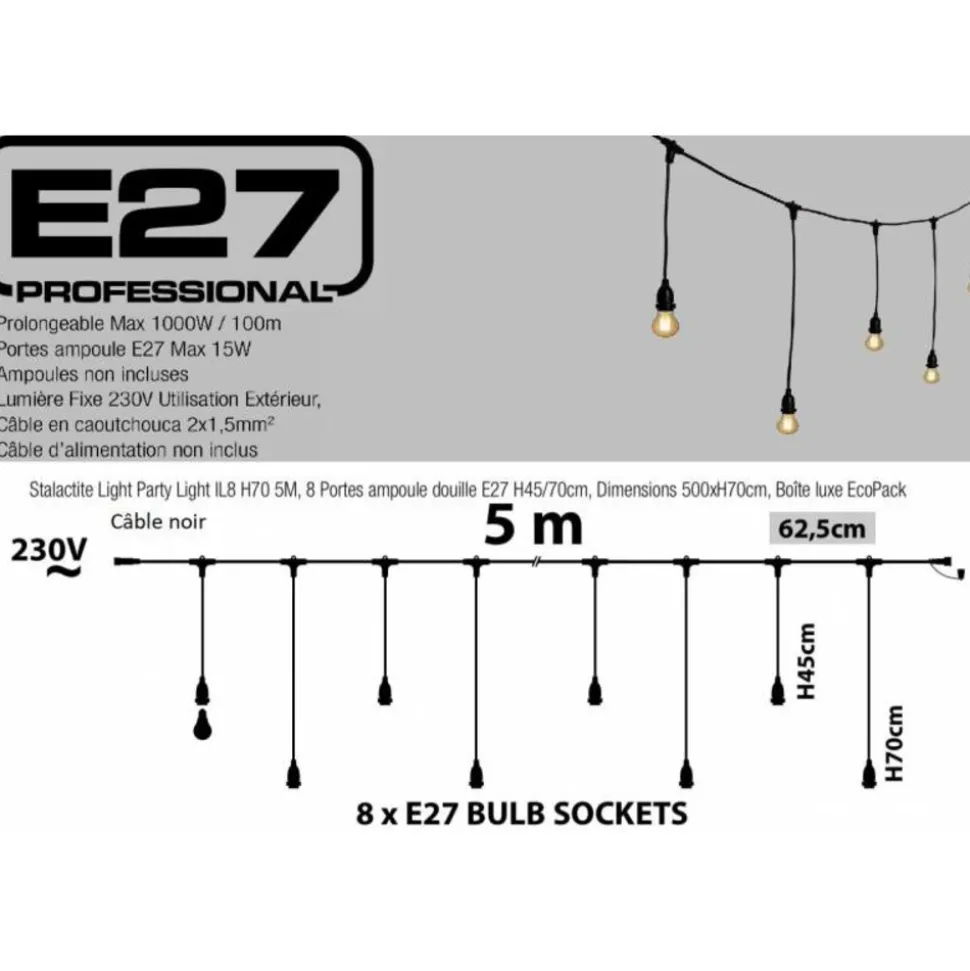 Stalactite Light Party Light IL8 H70 5M, 8 Portes ampoule douille E27 H45/70cm, Série PL E27 Professional 2pins, Câble d’alimentation non inclus, Prolongeable (Max 15W / 1000W / 100m), Lumière Fixe, 230V, utilisation Extérieur, Câble en caoutchouc Blanc 2×1,5mm2, Dimensions 500xH70cm, Boîte luxe EcoPack (XPLE Art. M-E27 IL8 H70 5M B SCA).