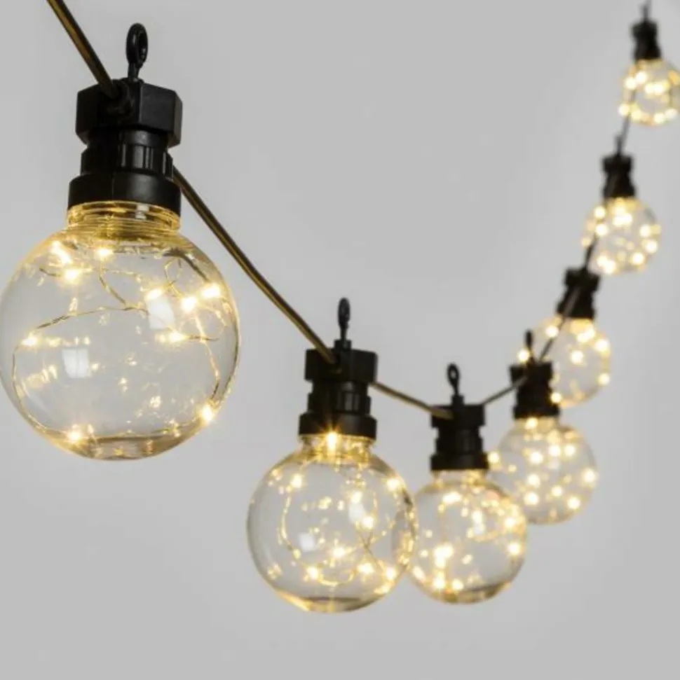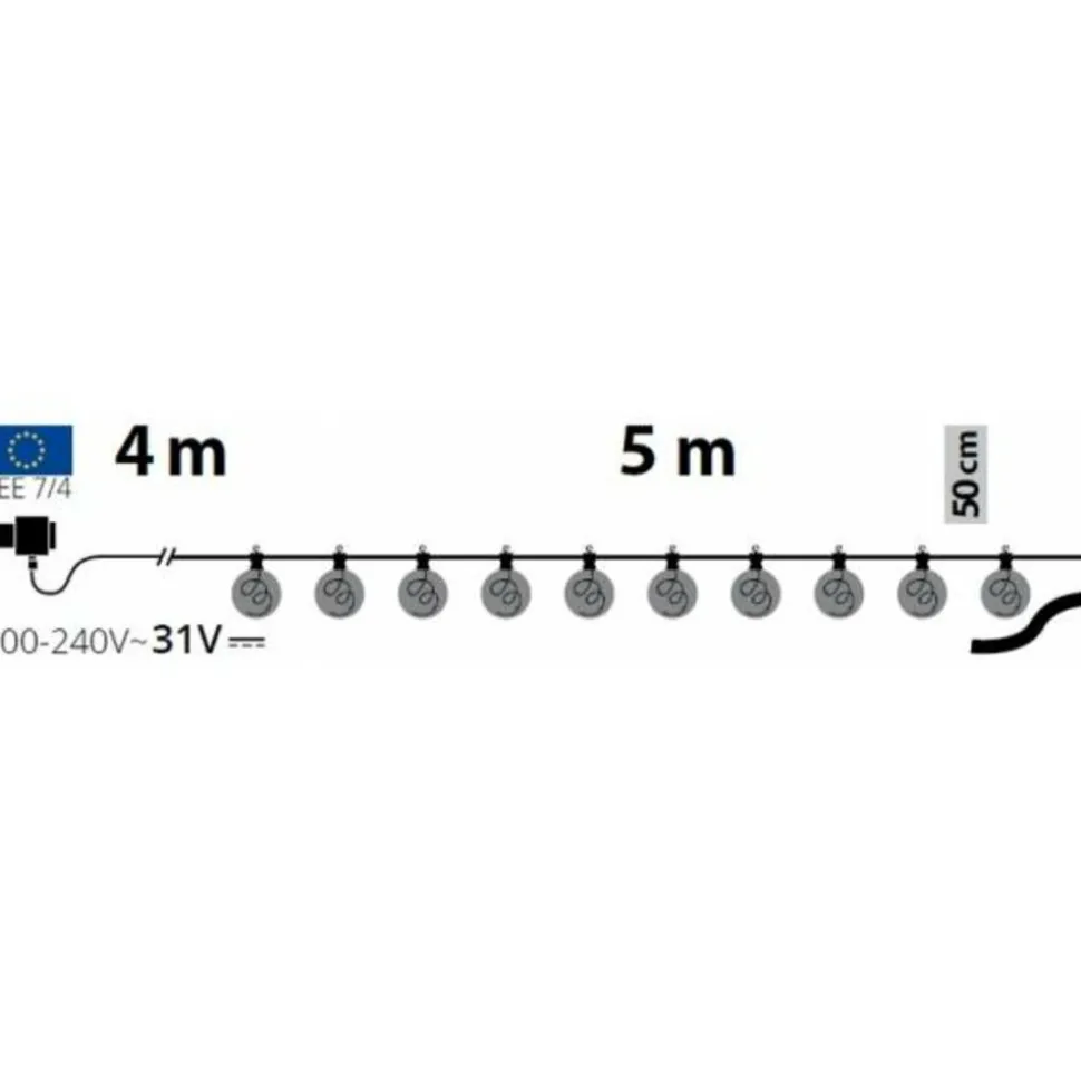 Guirlande lumineuse Party Light décorée 10 Ampoules G80 en Platique Transparent 100 MicroLED BLANC CHAUD Ø80mm, Lumière Fixe, Transformateur 4,5V, utilisation Extérieur, Câble d’Alimentation Noir 4m, Dimensions 4+5m, Boîte color (XKC Art. 10L G80-F HN 5M).