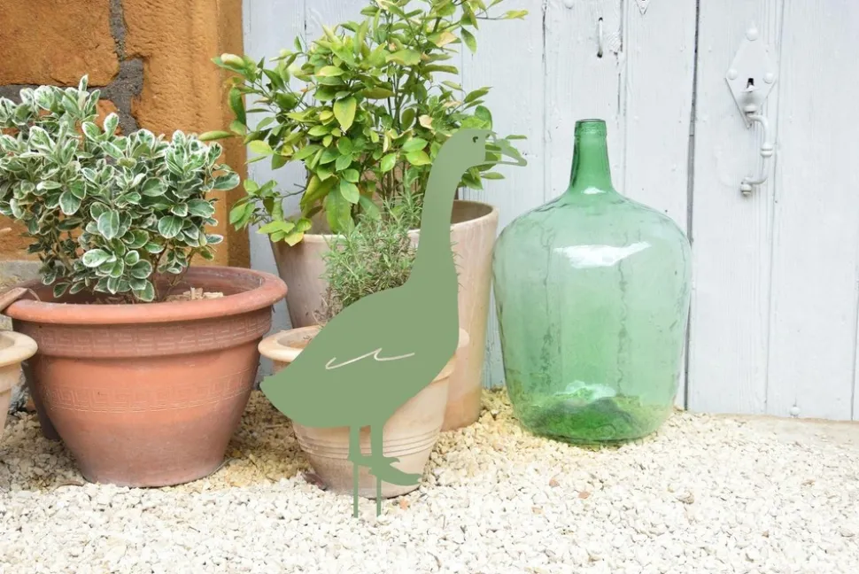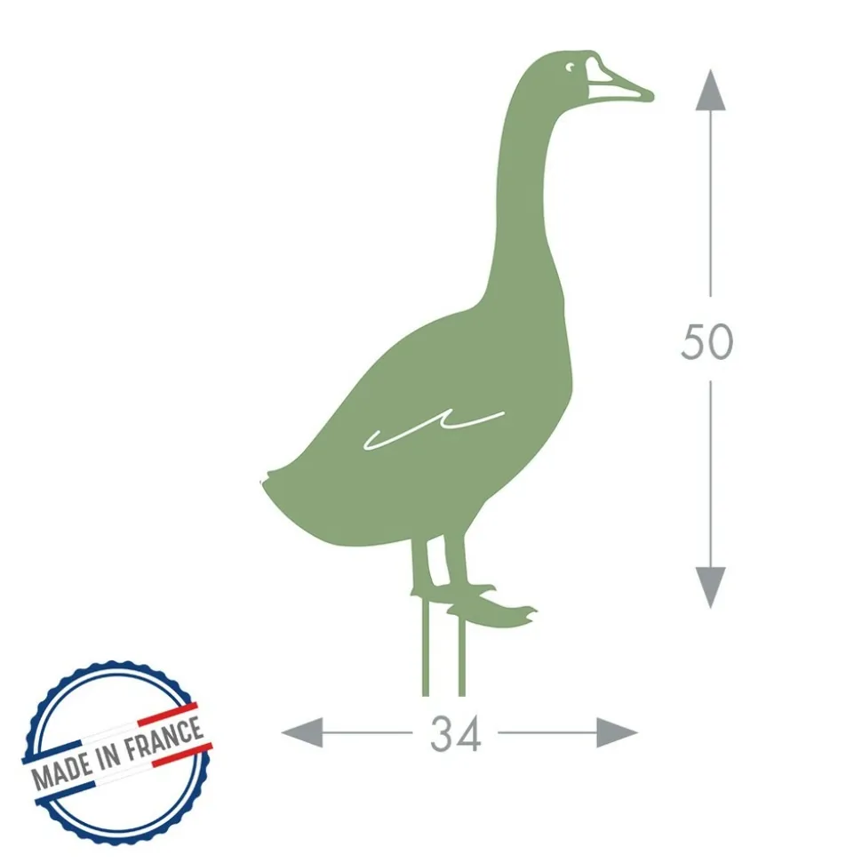 Cette figurine Oie à piquer dans la terre en pot ou en massif est parfait pour donner un peu de gaieté et de vie à votre espace extérieur. Cette figurine mesure 50 cm de haut hors sol et 34 cm de large. Fabrication française. Acier époxy résistant au gel et UV.