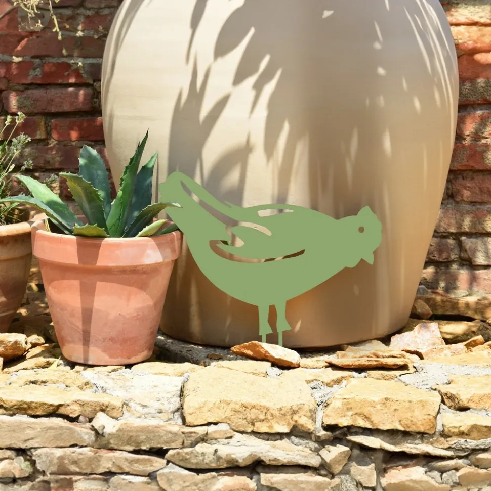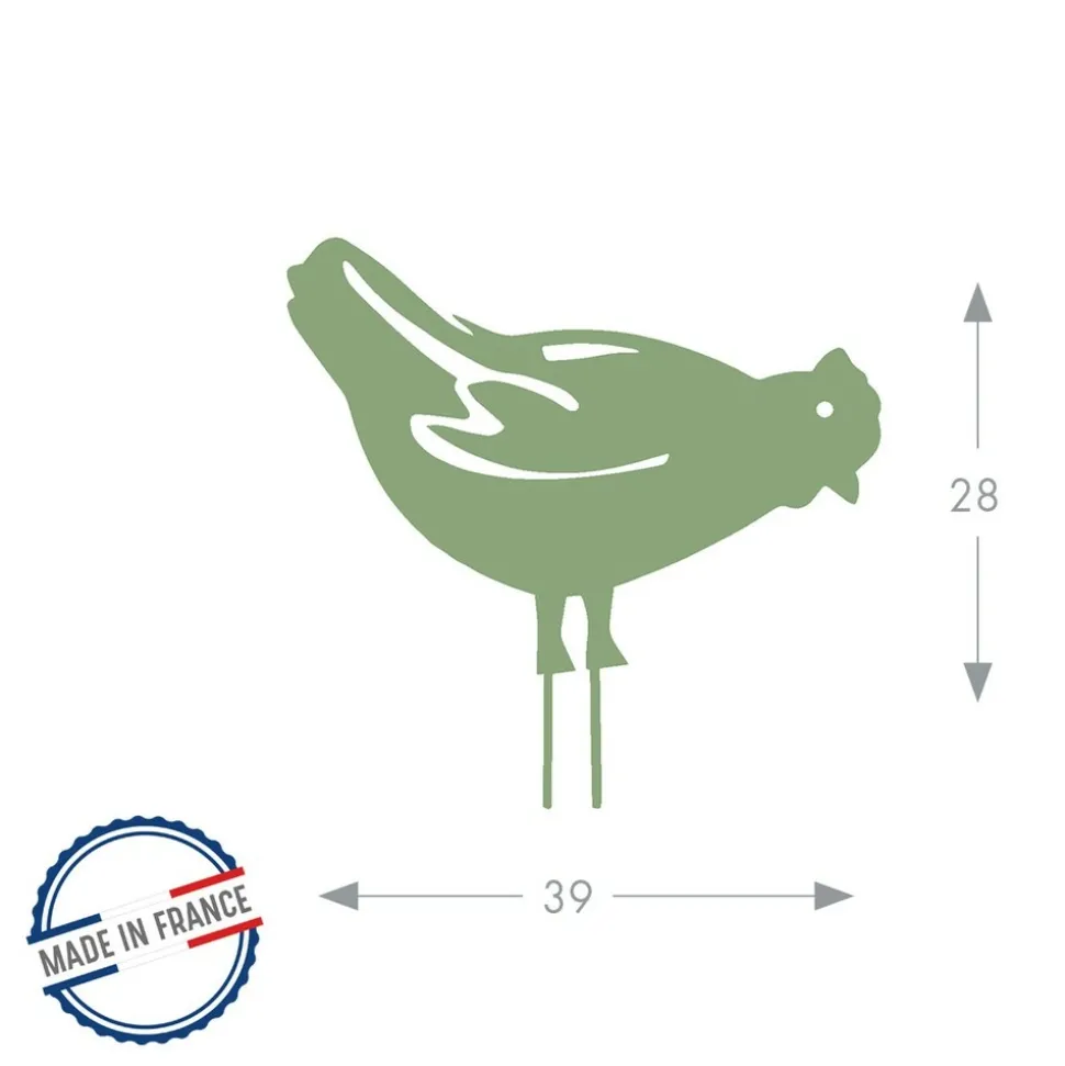Cette figurine Poule à piquer dans la terre en pot ou en massif est parfait pour donner un peu de gaieté et de vie à votre espace extérieur. Cette figurine mesure 28 cm de haut hors sol et 39 cm de large. Fabrication française. Acier époxy résistant au gel et UV.