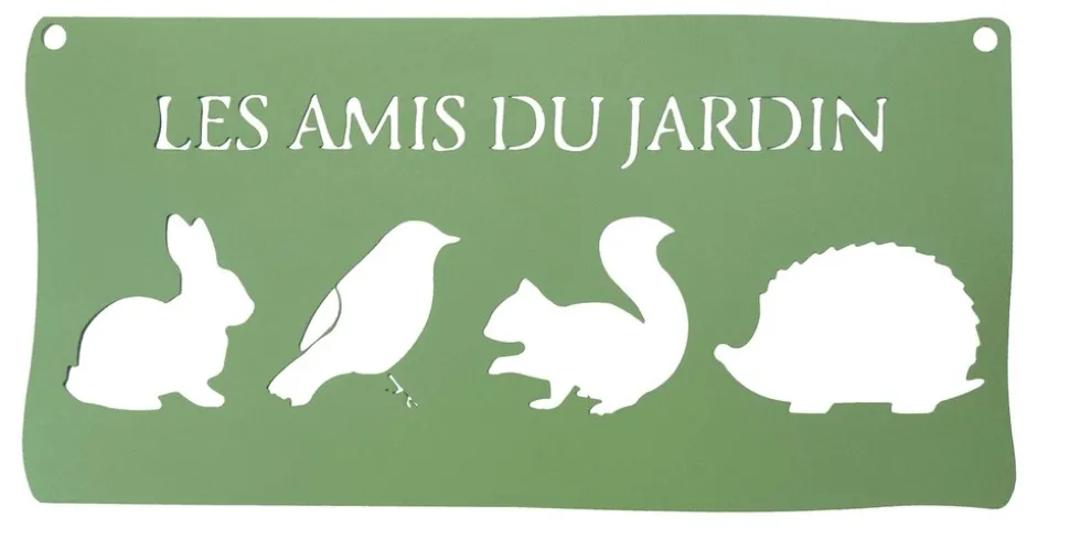 Inscription « Les amis du jardin » pour une décoration chaleureuse et accueillanteDimensions : 25,5 x 12,5 cmFabriquée en acier avec une peinture époxy résistante aux intempériesÉquipée de 4 trous de fixation pour une installation facile sur un mur, une clôture ou une terrasseAllie esthétique et durabilité pour sublimer votre jardinPoids : 0,200 kg