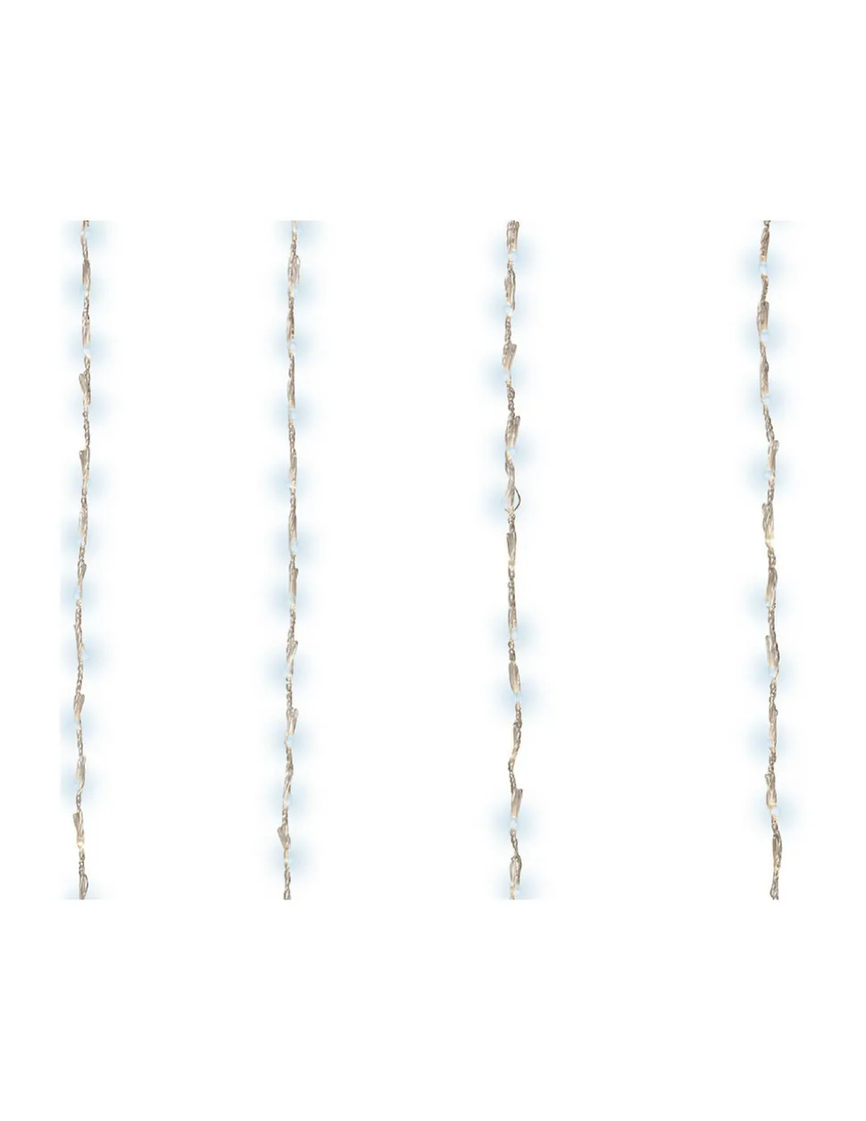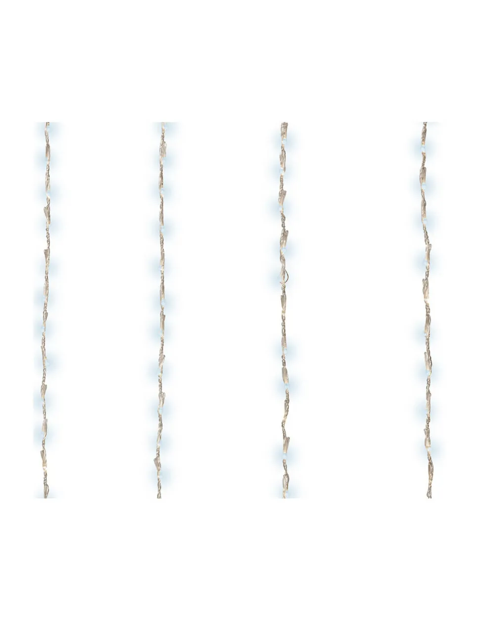 Rideau Led Balcon Usage Extérieur. Blanc Lumière Froide. 2x1m (largeur/hauteur) 220 Leds. Ip44 – Cable Transparent De 5m. 5 Vitesses. 11 Cordes. Distance Entre Les Cordes 20cm Et Entre Les Ampoules 5cm. Ampoules Non Remplaçables.