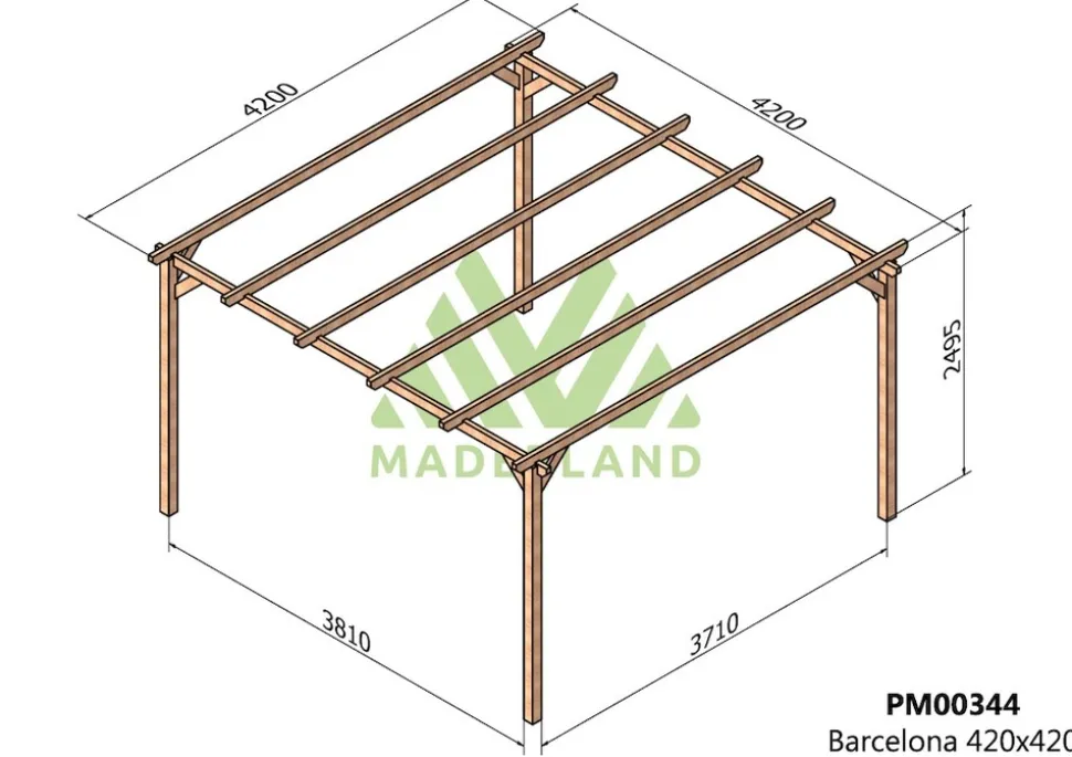 Apportez du charme et de la robustesse à votre espace extérieur avec la pergola bois BARCELONA. Conçue en bois de pin massif traité autoclave de niveau IV, elle garantit une excellente résistance aux intempéries et une grande durabilité.