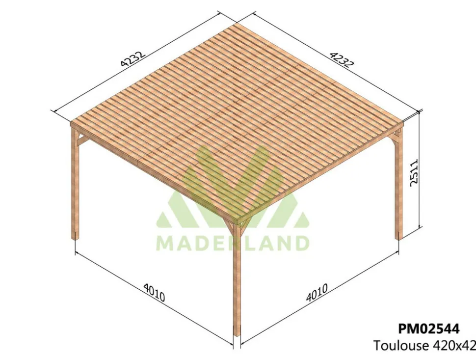 - Dimensions (L x l x H) : 423,2 x 423,2 x 251,1 cm