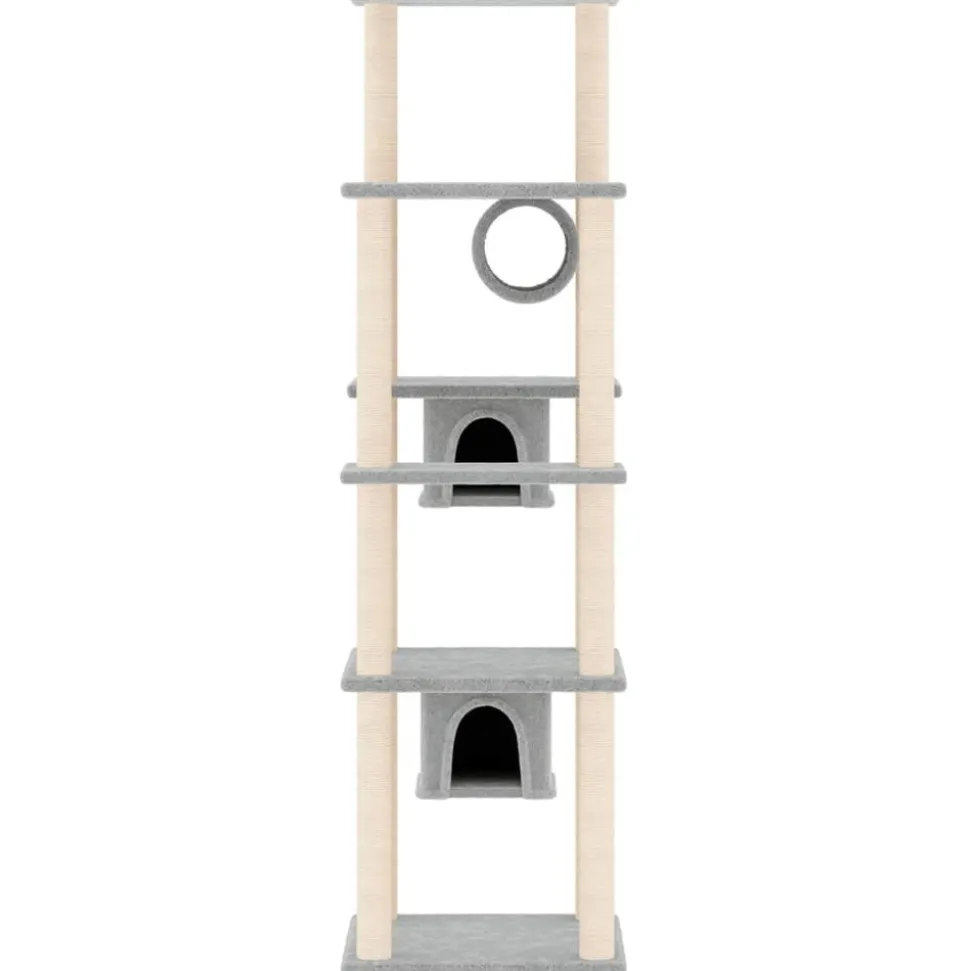Gardez vos adorables chats amusés sans fin avec cet arbre à chat tout-en-un ! Tour pour chats tout-en-un : le mobilier pour chats à plusieurs niveaux est conçu avec 2 maisons, 1 tunnel et plates-formes, offrant un endroit parfait pour que vos chats puissent grimper, se percher, se gratter, se cacher et aussi se détendre.Matériau moelleux et doux : la peluche très épaisse et douce est bien ventilée, résistante aux rayures, super confortable et chaude.Poteaux en sisal naturel : les poteaux en sisal naturel, résistants et solides de l’arbre à chat, sont parfaits pour que vos chats adorés puissent satisfaire leur instinct de grattage et évitent qu’ils n’endommagent pas vos meubles. Remarque :Chaque produit est livré avec un manuel de montage dans la boîte pour un montage facile.