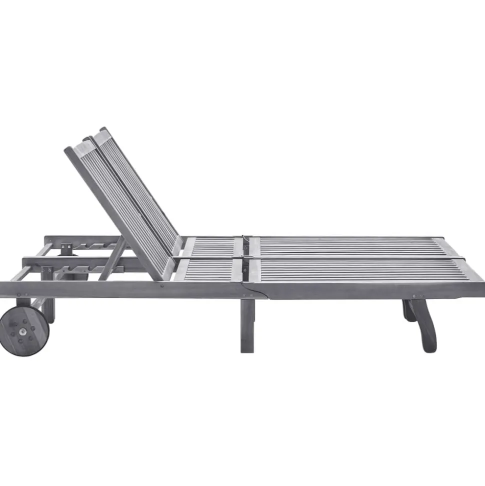 Détendez-vous et reposez-vous dans votre jardin ou patio sur cette confortable chaise longue en bois ! Vous pouvez passer un après-midi de détente dans votre propre espace extérieur. Elle est parfaite pour une piscine, balcon, jardin, etc. Cette chaise longue d’extérieur est fabriquée en bois d鈥檃cacia massif avec une finition de couleur grise, ce qui la rend robuste et stable. Le dossier et le repose-pied sont réglables, et vous pouvez verrouiller la chaise longue dans la position souhaitée. Cette chaise longue de jardin peut être facilement déplacée autour de la maison grâce à 2 roulettes. Le coussin ajoute un confort supplémentaire pendant que vous vous prélassez.