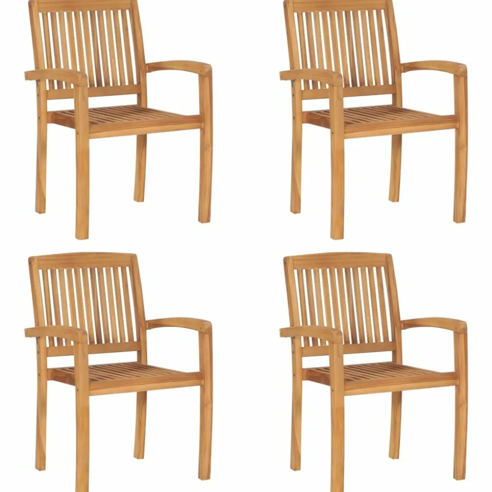 Ajoutez une touche de charme rustique à votre salle à manger, jardin ou terrasse avec cet ensemble de chaises de jardin empilables avec ensemble de coussins ! La chaise de salle à manger élève votre espace de vie intérieur ou extérieur à un niveau supérieur avec un design à lattes et élégant. Cet ensemble de meubles en teck est fabriqué à partir de bois dur de teck extrêmement durable et est chevronné, séché au four et poncé finement pour lui donner un aspect très lisse. Le bois de teck est connu pour sa solidité et sa résistance aux intempéries exceptionnelles, ce qui le rend bien plus adapté aux meubles de jardin que tout autre type de bois. Le bois de teck est le choix parfait si vous souhaitez acheter un meuble de jardin durable. Il est facile à entretenir et à nettoyer avec un chiffon humide. De plus, la chaise de salle à manger peut être empilée pour économiser de l’espace de stockage lorsqu’elle n’est pas utilisée. De plus, les coussins inclus offrent un confort supplémentaire. Chaque coussin a 2 jeux de cordes pour le fixer fermement sur la chaise. Remarque : afin de prolonger la durée de vie de vos meubles d’extérieur, nous vous recommandons de les nettoyer régulièrement et de ne pas les laisser à l’extérieur sans protection inutilement.Nettoyage : utiliser une solution savonneuse douceStockage : si possible, stockez dans un endroit frais et sec à l’intérieur. Si le produit est stocké à l’extérieur, protégez-le avec une housse imperméable. Essuyez et séchez l’excès d’eau ou de neige des surfaces planes après la pluie ou une chute de neige. Permettez une circulation d’air suffisante afin d’éviter les dommages liés à l’humidité.