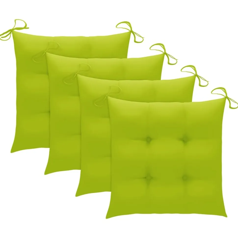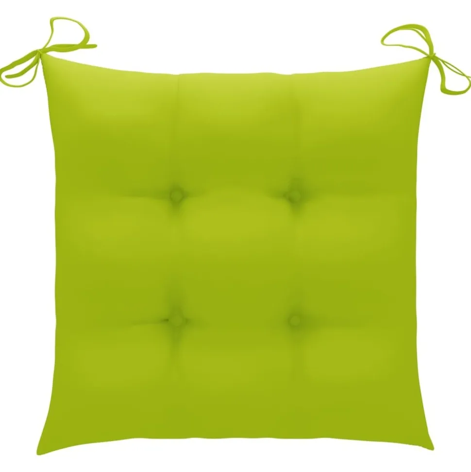 Ajoutez une touche de charme rustique à votre salle à manger, jardin ou terrasse avec cet ensemble de chaises de jardin empilables avec ensemble de coussins ! La chaise de salle à manger élève votre espace de vie intérieur ou extérieur à un niveau supérieur avec un design à lattes et élégant. Cet ensemble de meubles en teck est fabriqué à partir de bois dur de teck extrêmement durable et est chevronné, séché au four et poncé finement pour lui donner un aspect très lisse. Le bois de teck est connu pour sa solidité et sa résistance aux intempéries exceptionnelles, ce qui le rend bien plus adapté aux meubles de jardin que tout autre type de bois. Le bois de teck est le choix parfait si vous souhaitez acheter un meuble de jardin durable. Il est facile à entretenir et à nettoyer avec un chiffon humide. De plus, la chaise de salle à manger peut être empilée pour économiser de l’espace de stockage lorsqu’elle n’est pas utilisée. De plus, les coussins inclus offrent un confort supplémentaire. Chaque coussin a 2 jeux de cordes pour le fixer fermement sur la chaise. Remarque : afin de prolonger la durée de vie de vos meubles d’extérieur, nous vous recommandons de les nettoyer régulièrement et de ne pas les laisser à l’extérieur sans protection inutilement.Nettoyage : utiliser une solution savonneuse douceStockage : si possible, stockez dans un endroit frais et sec à l’intérieur. Si le produit est stocké à l’extérieur, protégez-le avec une housse imperméable. Essuyez et séchez l’excès d’eau ou de neige des surfaces planes après la pluie ou une chute de neige. Permettez une circulation d’air suffisante afin d’éviter les dommages liés à l’humidité.