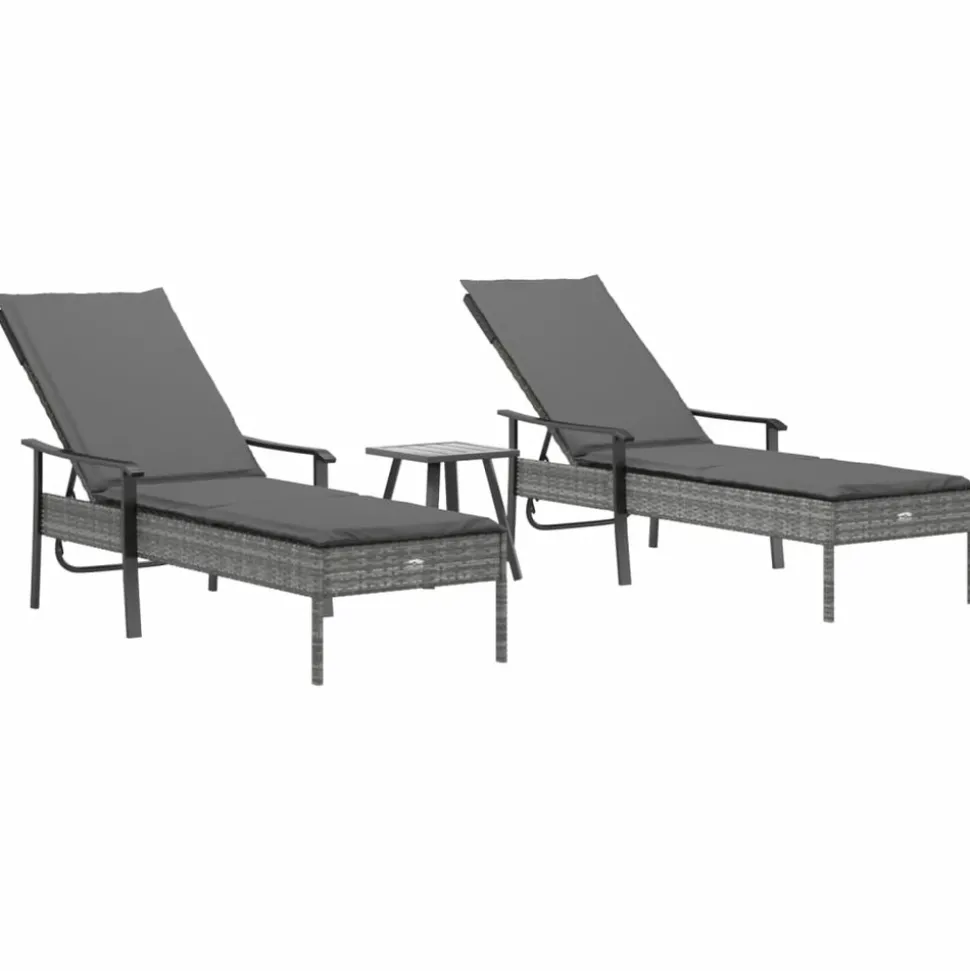 Ces chaises longues en résine tressée avec une table sont un choix parfait pour vous permettre de vous détendre et de profiter de la journée dans votre espace d’extérieur. Matériau durable : la résine tressée, également connue sous le nom de rotin poly, résiste aux intempéries et est facile à nettoyer. Elle reste belle à l’extérieur pendant une longue période. Elle est plus économique que d’autres matériaux, tout en offrant une excellente qualité, une commodité et un aspect esthétique.Cadre robuste et stable : le cadre en acier enduit de poudre rend le lit de bronzage robuste et stable pour une utilisation quotidienne en extérieur.Dossier réglable : le dossier de la chaise longue est réglable en 5 positions, afin que vous puissiez toujours trouver la position la plus confortable.Expérience confortable : le coussin bien rembourré de la chaise longue offre un confort ultime pendant votre temps de détente. Et le lit de bronzage est conçu avec des accoudoirs pour vous offrir une expérience d’assise ou de couchage confortable.Table pratique : la table vous permet de placer votre téléphone, vos lunettes de soleil, vos boissons et autres petits objets à portée de main. Remarque :Pour que vos meubles d’extérieur restent beaux, nous vous recommandons de les protéger avec une housse imperméable.